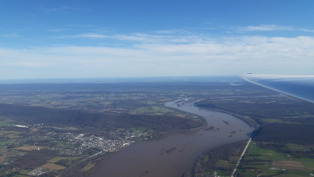 The thermals now peaked and it was possible to make good speed just thermalling along. The wind was still quite westerly, so I was wondering if the whole system had shifted or if this was a localized effect. I would test this out after getting back across the Potomac; if the wind had shifted, I would be tasked with thermalling the 180 miles home after that.