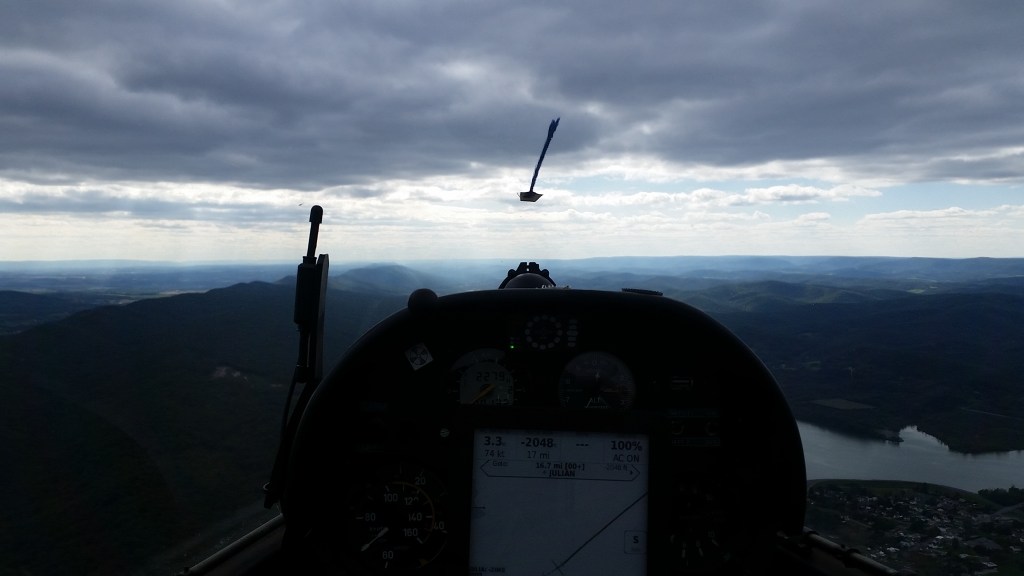 Hanging a right toward Williamsport, I saw a nice break in the overcast. Looks like wave again! Right at the end of the ridge, there was a nice street and a beautiful Foehn gap. Let’s see if we can connect here.