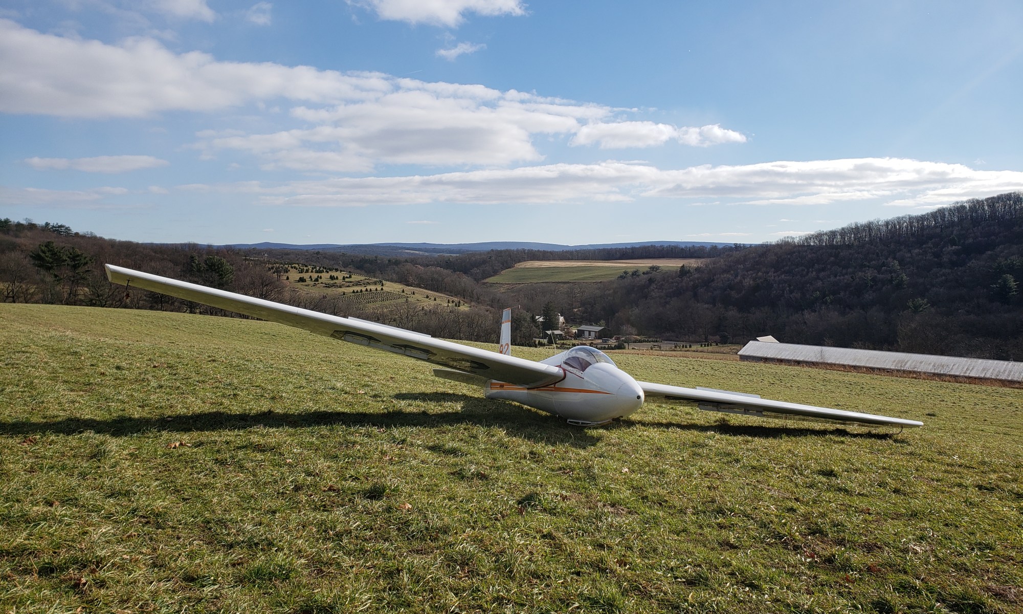 Turns out the fellow and his wife were from Brooklyn. He was a cop in the 80s and when he finished his duty and got the pension, he moved out to PA. That gave a heck of a lot to talk about, let alone the glider flying stuff and their life story, typical fodder for landout banter. During this time, I texted Steve and Rob that I had landed, hoping that they would see my note only when they had come down. I didn’t want their flights to be curtailed on my behalf.