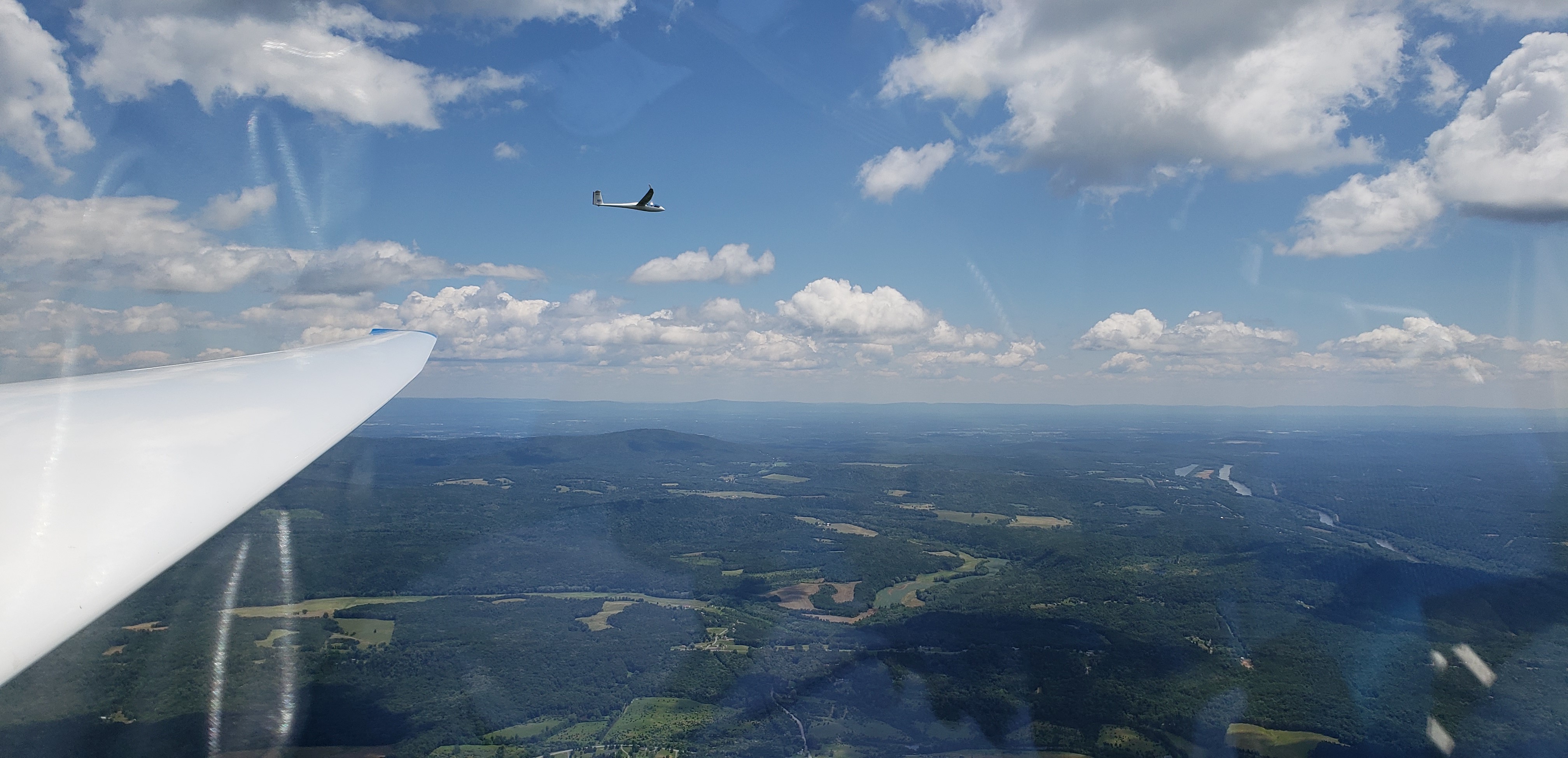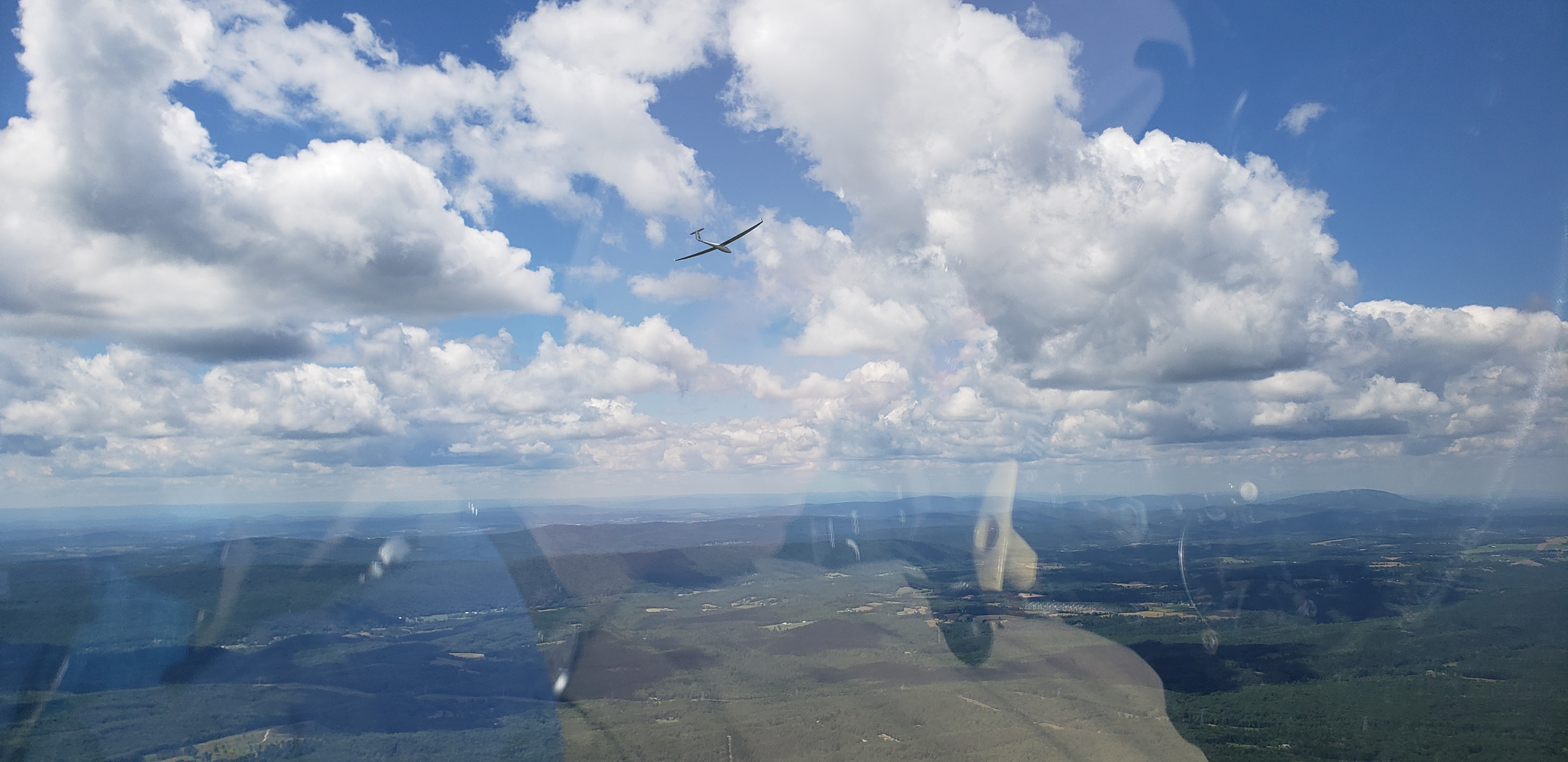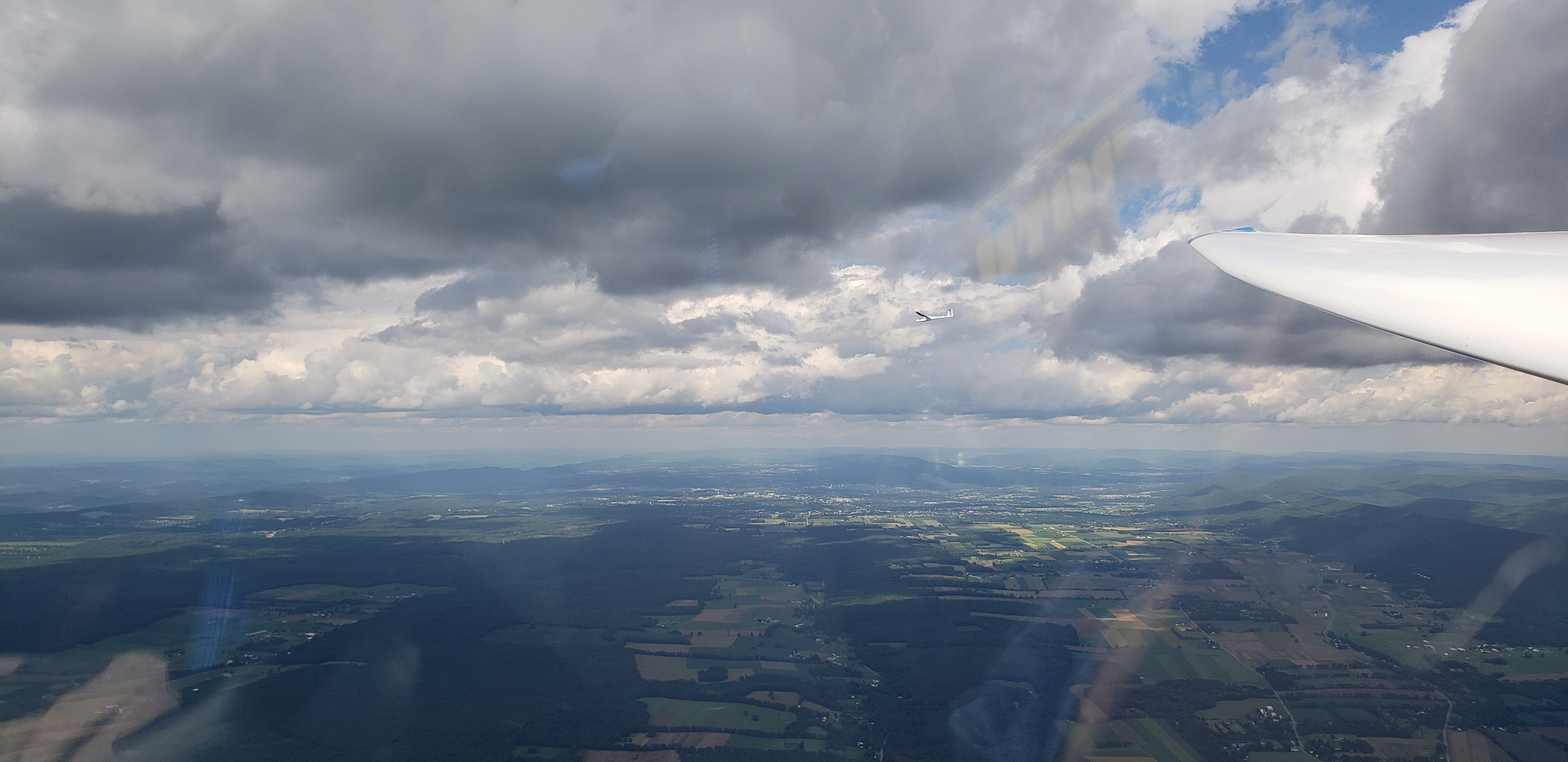 The thermalling worked out beautifully and we had a couple really gorgeous runs up streets. One especially great run was off of Jacks Mountain. A shower rolled through the area and we caught a seven knotter to cloudbase and then a street all the way to Tussey.