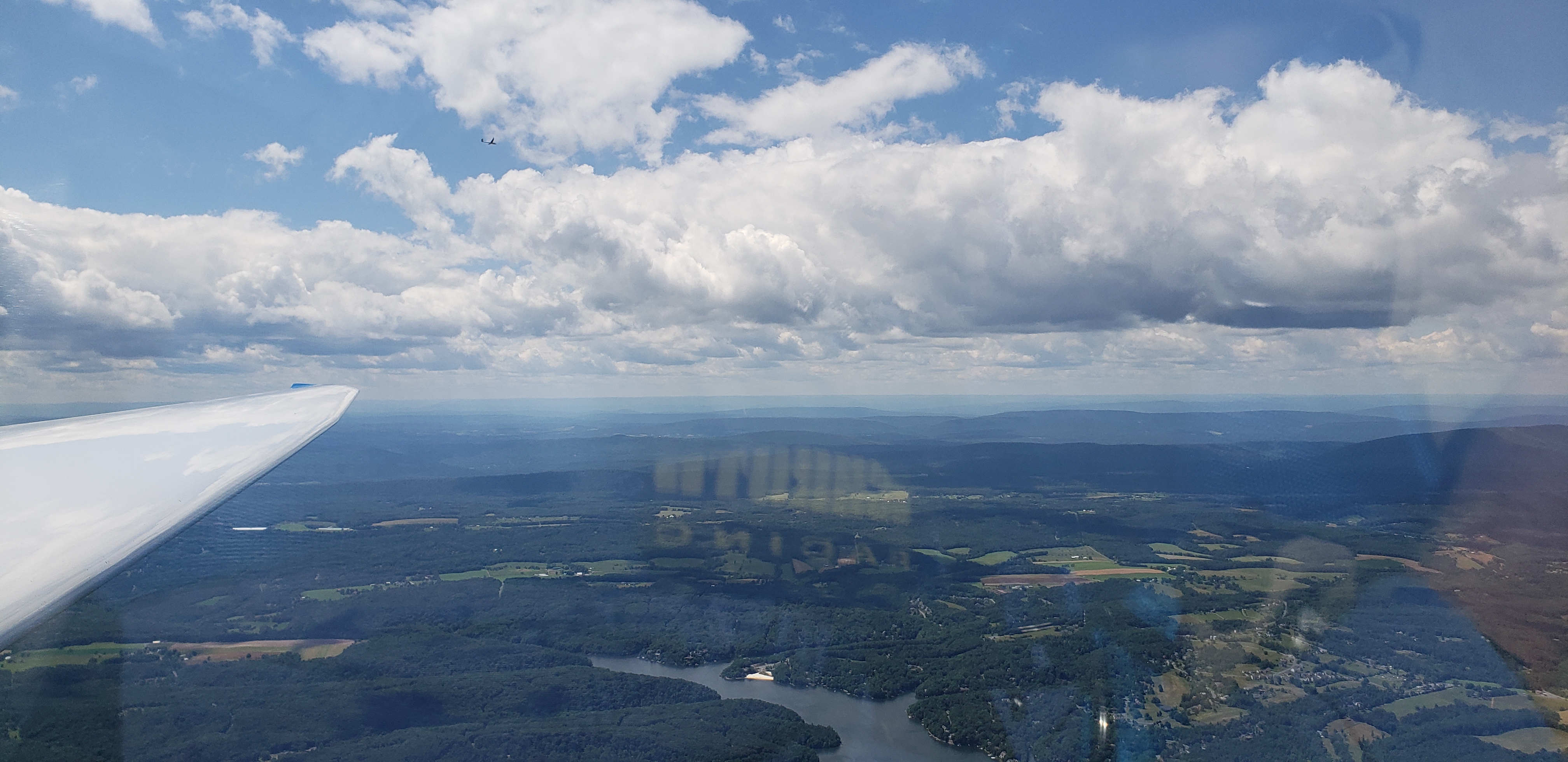 Another interesting moment was coming back from Lockhaven to Julian, PA. A shower was about ready to dump near Milesburg Gap, bad news. We didn’t want to drive in there low. So we gingerly climbed up in weak lift, both getting higher and letting some time go by so that the shower would finally pass. Noah correctly assessed the development of the shower and I did a good job of finding and centering the smooth two knotter near Howard Dam.
