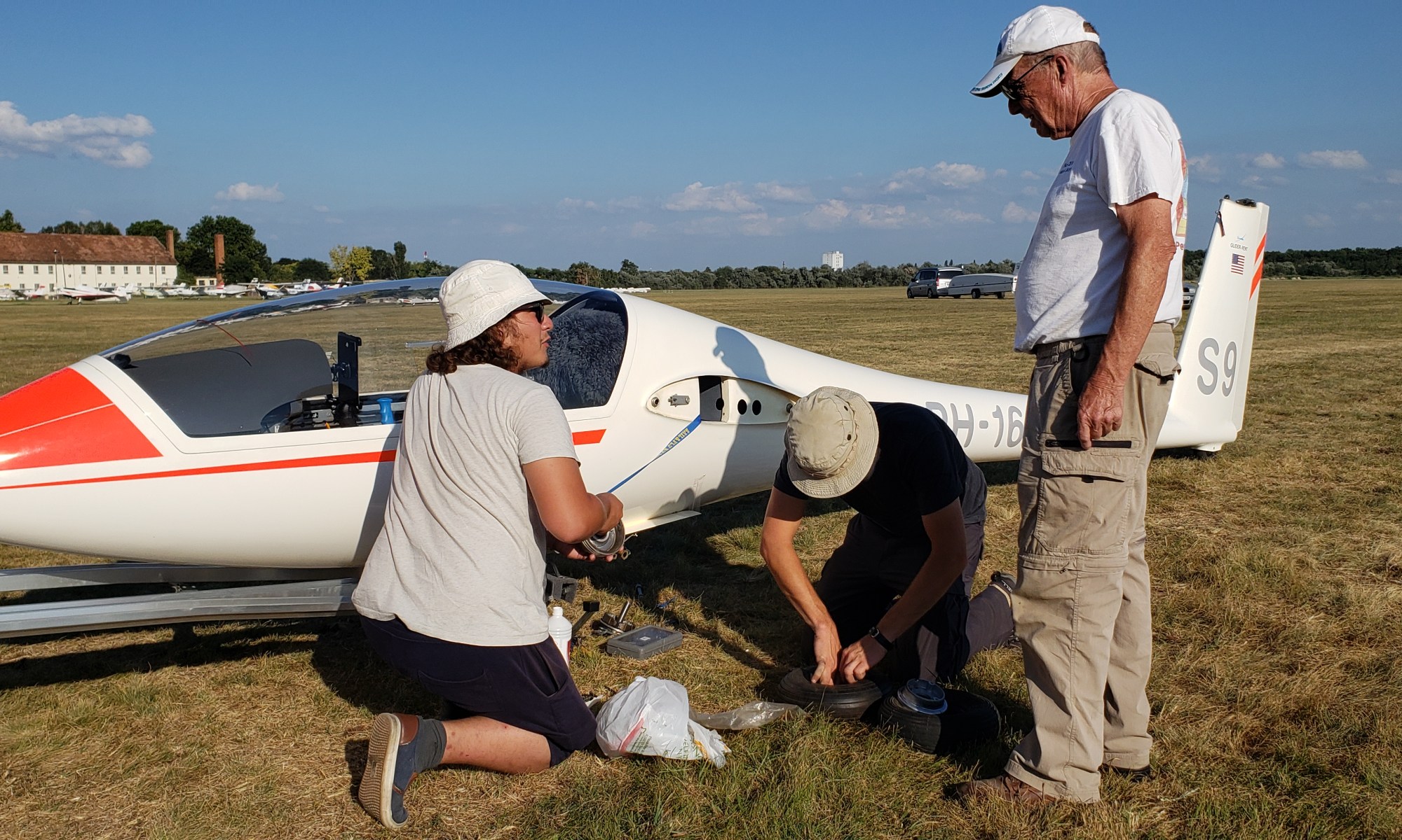 Today was an exciting day for the US Team. JP arrived and got up to speed. He took a flight to get settled into S5, his LS4 for the competition. Noah flew to get a bit more thermalling experience in his ship. I flew to fiddle with the equipment some more. The flying wasn’t terribly exciting because we had to be at the airport at 5:20pm for “scrutineering” or the official contest inspection or weighing. We had no interest in going cross country and risking an off-field landing. That said, our afternoon and evening were more exciting than any of us expected.