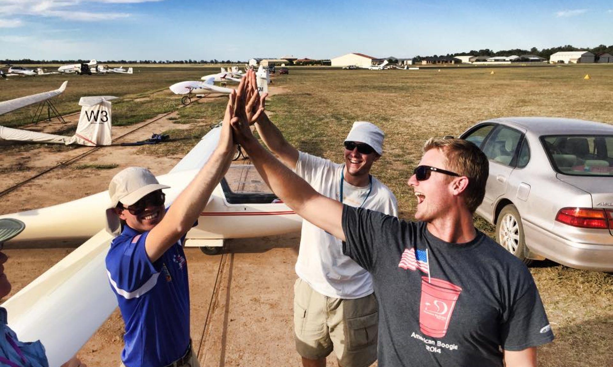 As I was rolling to a stop, Luke was already on his way to pick me up. We had the glider back at the tiedown area and then headed back to the team house for a short respite. Just as I was about ready to fall asleep for a short nap, Noah called me up. He had just landed and his tire went flat.