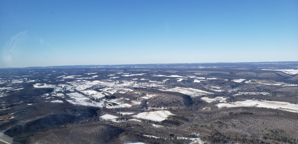 The visibility was unbelievable, genuinely unlimited. At a couple hundred feet above ridge top, you could just make out the tops of the New York City skyscrapers poking above the hills. It was easy to spot the airliners from the Flarm. They looked like big insects that you could just reach out and pick up as they passed over the canopy.