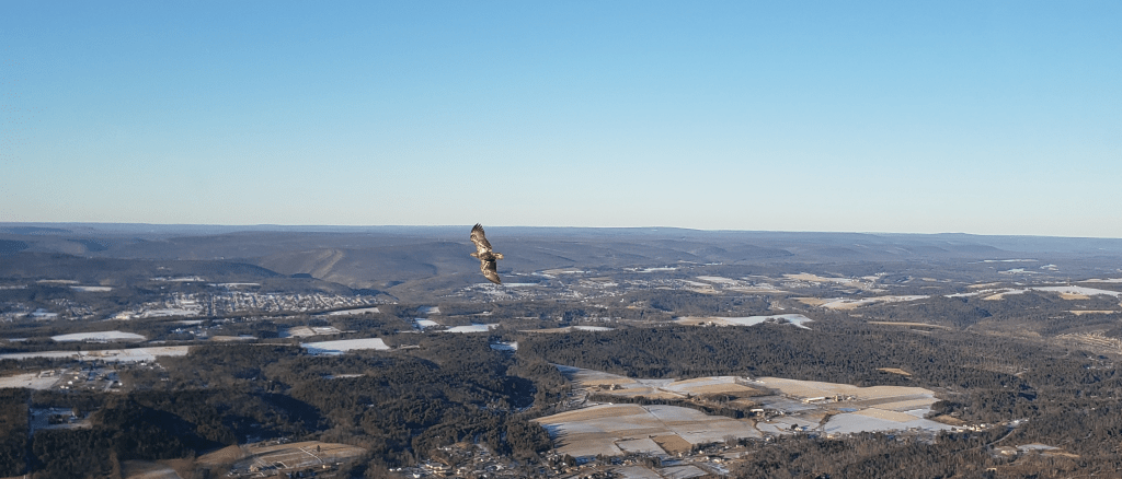 The run down to Hawk Mountain went quickly and I contemplated going farther. However, the thermals weren’t working well and the wind sharply slackened off from 20 knots down to 15. It looked like Hawk was as far as I’d get today. Back to doing laps, I suppose and I turned around, 100km from my starting point.