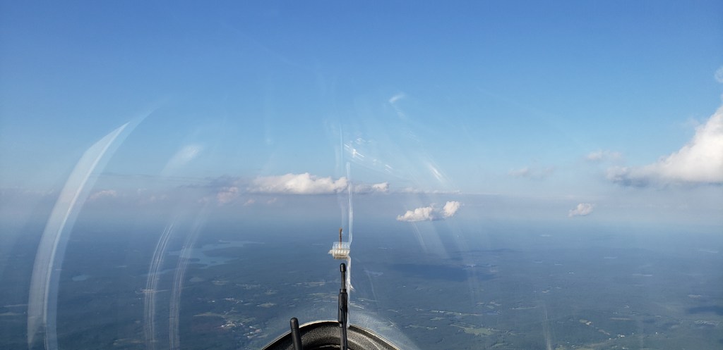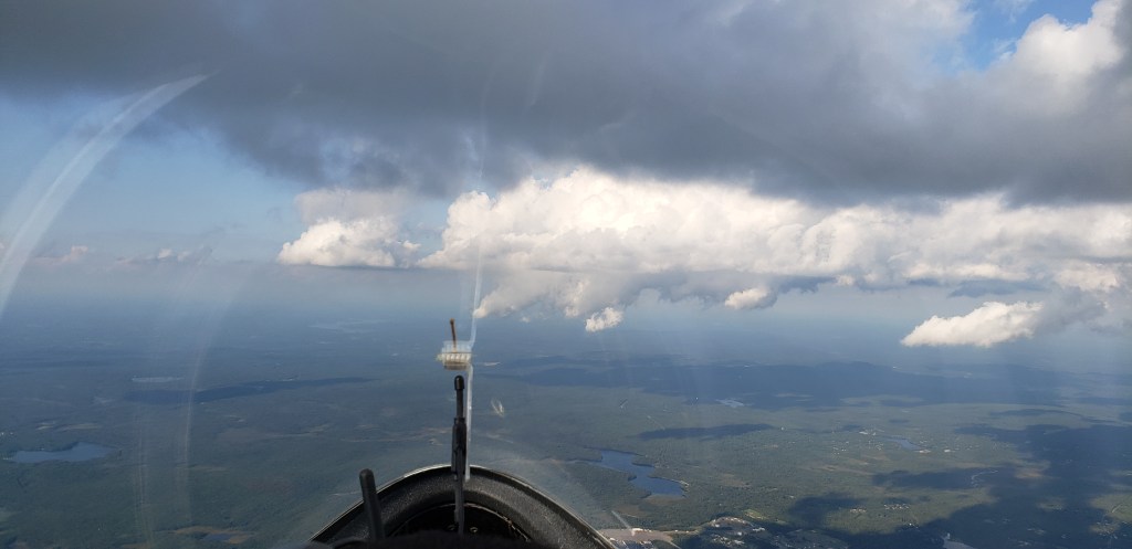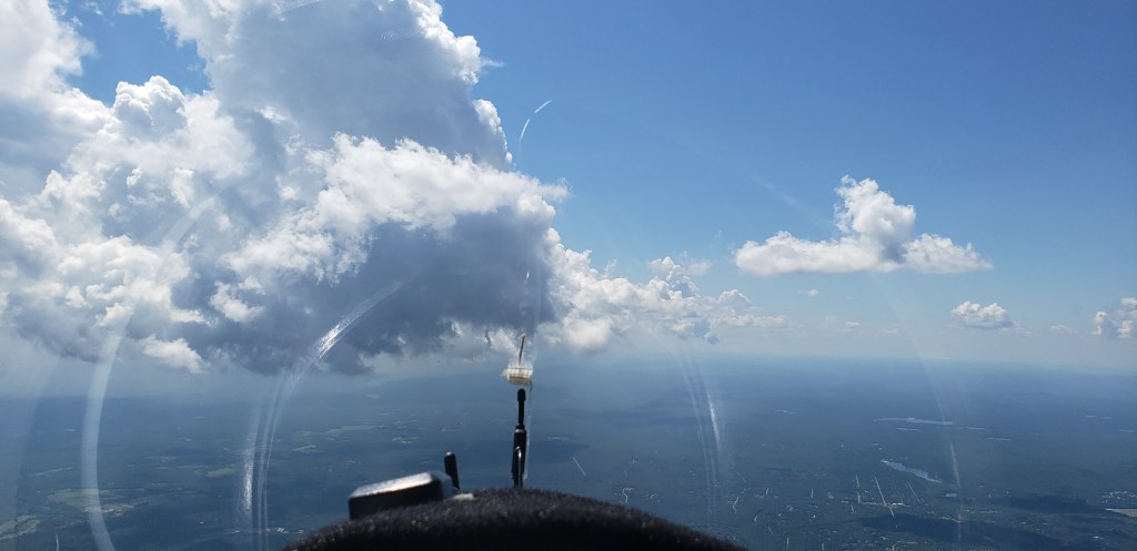 Looking dead ahead toward the Poconos plateau though, the sky totally transformed. The clouds formed little cottonball puffs at 6500ft and you could see miles and miles away. Once over the edge of the plateau, I found solid lift and climbed right alongside the clouds!