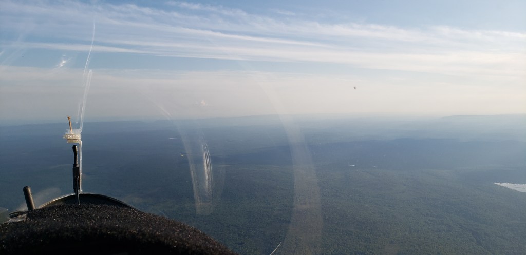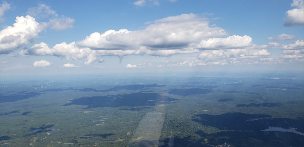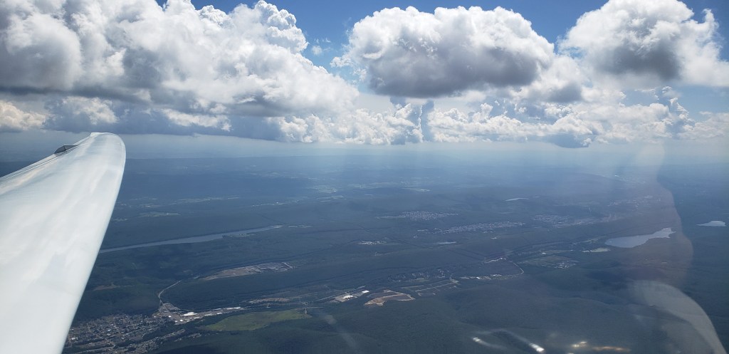 Heading across Scranton, the Alleghany plateau invited me with beautiful clouds ahead. While I had flown up before, I’ve never directly flown across these imposing mountains. The wind is often times a bit too strong and the thermals are disorganized for many miles. Going into unlandable terrain, higher terrain, and a headwind is a dubious proposition. Most of the time the edge of this plateau acts like a brick wall.