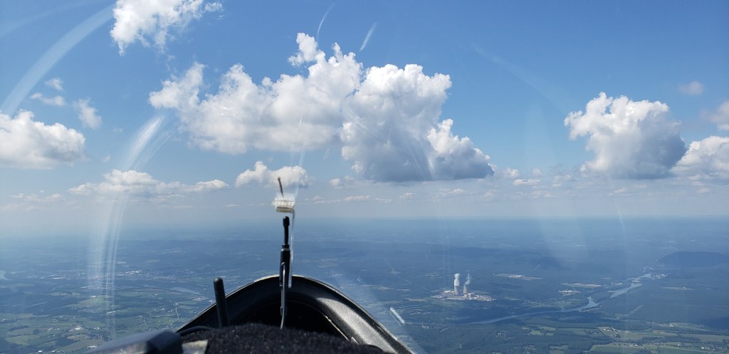 Picking up the pace, I found reliable 2-3 knot thermals under honest clouds. Going toward Hazleton, the cloud base dropped off, but no worries; my nose was aimed squared at the Berwick Nuclear Powerplant.