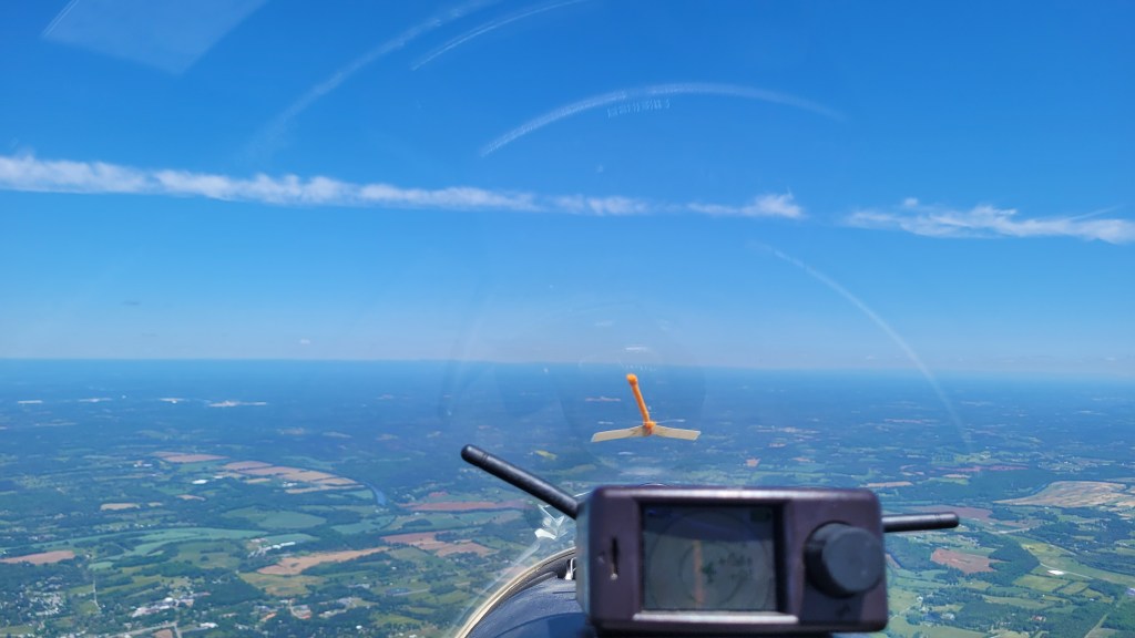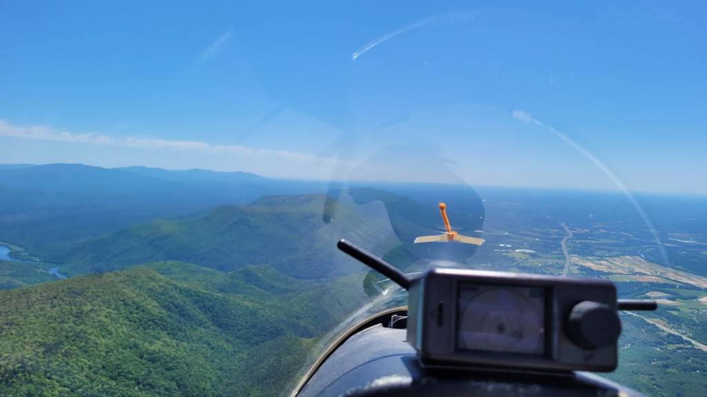 Nose down to 80 knots, let’s go for it. After waving goodbye to Tony, I zipped over to the turn, banked hard and dove for the ridge. It looked best to arrive around 500ft above ridge top, so I took two short climbs to make sure I got high enough that I’d definitely stay connected. And upon arriving, I was greeted with well formed bubbles in close proximity to each other, just as planned. The ridge really didn’t work all that well, but the high part near the Microwave tower felt like on solid thermal for a good mile. In all, I ended up gaining around 1,500ft for the final glide and only needed a couple turns before Etowah to make a safe and comfortable MC4 glide back home.