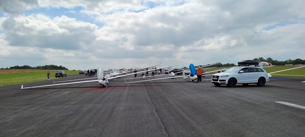 It has been a tough contest, with some of the most miserable and difficult weather I had ever flown in. We start the tasks at 800 meters AGL and fly in windy conditions in large gaggles with thermals that hardly exceed 1 m/s. We struggle through suppressed and dead areas, to dig out at 300 meters AGL as others land out around us. We hang on the gaggle as the sun glistens over our shoulders as we park in 0.3 m/s to get on a marginal final glide to the finish sector to finish with penalty points. Or in my case, to get dropped off the bottom and land in a field short. And on other days, nearly all land out as the day dies earlier than expected. In short, it has been tough and brutal flying.