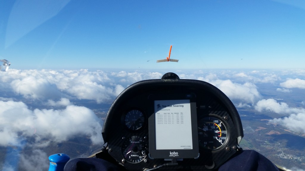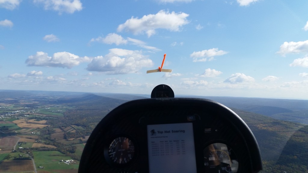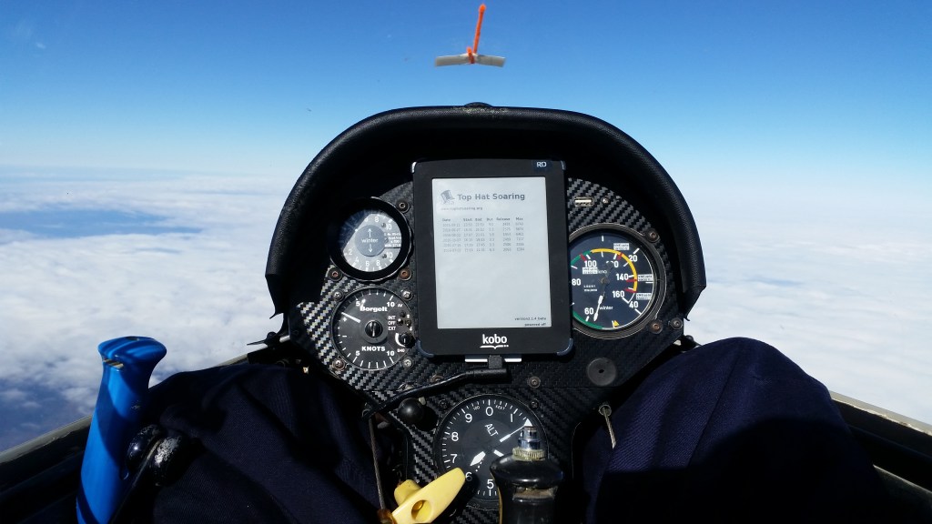 Finally, at 12,800ft I peaked out in the tertiary and dove out to the secondary. I pushed the LS4 over to 100 knots to penetrate into the 70+ mph wind. I became keenly aware of the tiniest leak off the vent as the cold air seeped onto my feet. It was really freakin’ cold. The sun was on my back and I wasn’t expecting to get above 10,000ft!