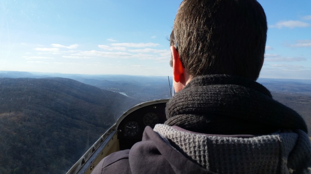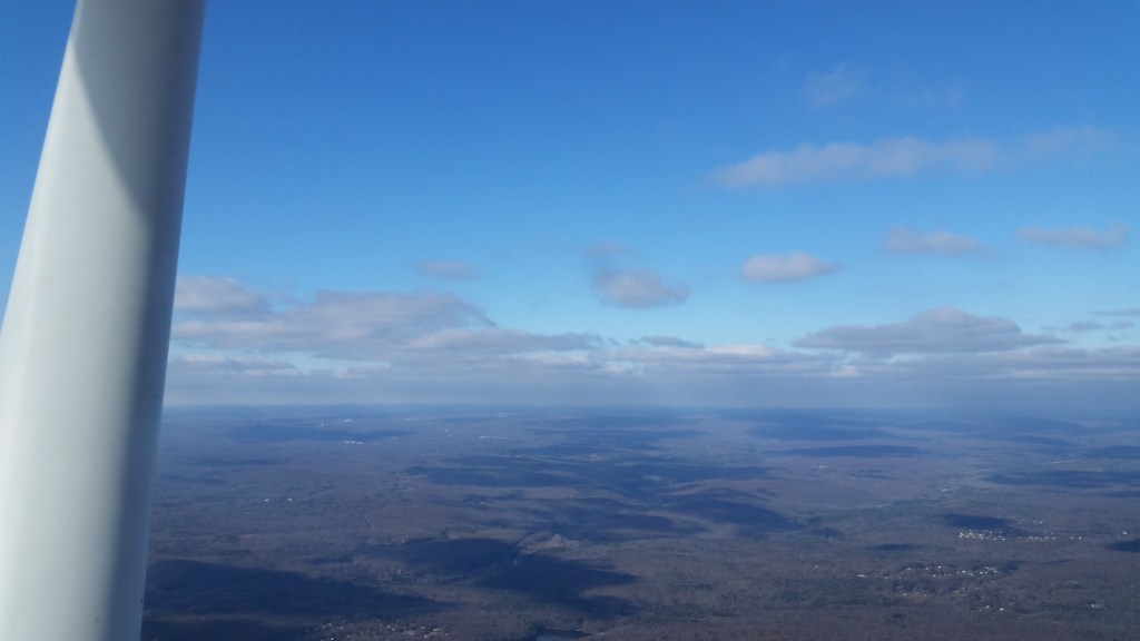 Later we mustered the courage to fly up to the Millbrook power line, to then find that we got stuck at 1650ft on the Catfish ridge. Doubling back, we found a good thermal and beautiful streets marching NW. The thermal conditions getting better and the ridge feeling a bit soft, we decided to explore the streets instead. After a slow climb, we poked around and found nice thermals all the way beyond East Stroudsburg. I remarked that “ridge days” are exciting not only because of the ridge, but because they have a lot of cool soaring potential. It was pretty extraordinary to make the 2-33 float into the wind without turning!