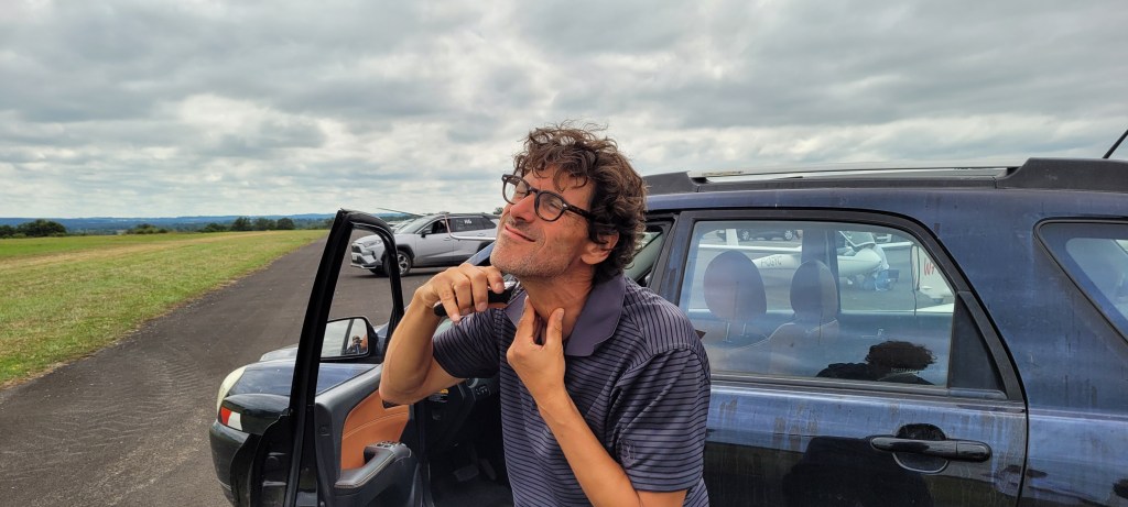 What a roller coaster of a day! The morning started out with a big storm that totally drenched the airport. The mulberry tree just outside my camper van got shaken up, dropping many berries to get squashed under foot. Puddles submerged sections of the concrete pads making the ramp look like a collection of many little islands. When we arrived at the pilot’s meeting, none of us were expecting much from the day.