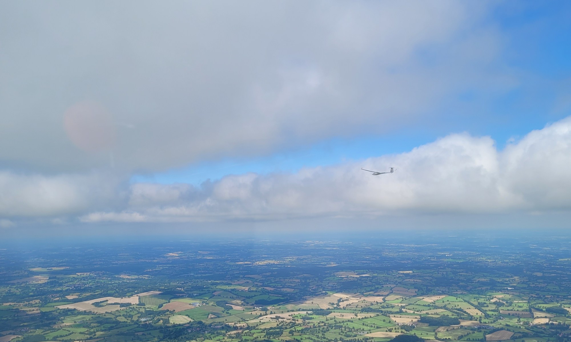 Good air, we are gaining on the glide. Several gliders circling at the steering turnpoint, more good air. We are cooking in hot.