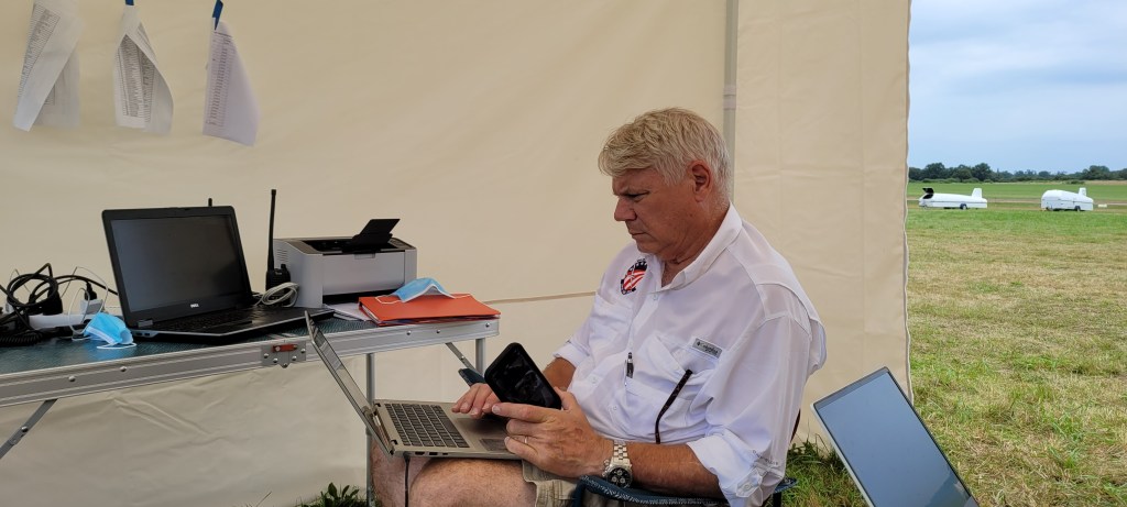 As we waited around in the team tent, we planned out our task. The area task took us north into a narrow wedge between airspace and we had a couple contingencies if the weather got better or worse. After we fininished our planning, I talked to our Ukrainian neighbors next door. Their team captain, Valentina, won a Silver Medal at the 1991 Women’s Worlds in Britain. She told me all about soaring during Soviet times and how the clubs got developed in the Ukraine.