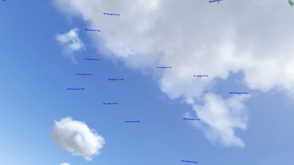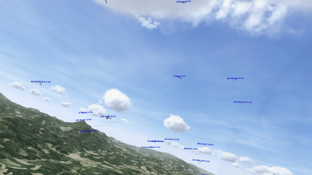 Get involved in the Multiplayer racing and on Teamspeak to talk to the experienced folks. The simulator is so amazing that people who have been doing it for fifteen years are still challenged, make mistakes, land out, and enjoy it. Some of those experienced pilots are accomplished soaring pilots in real life. And they’d love to share their love of the sim and soaring with you! The social environment is laid back. We openly talk about strategy, tactics, and upcoming decisions, even though we are still “racing” each other. Some folks simply listen in. Some ask questions along the way.