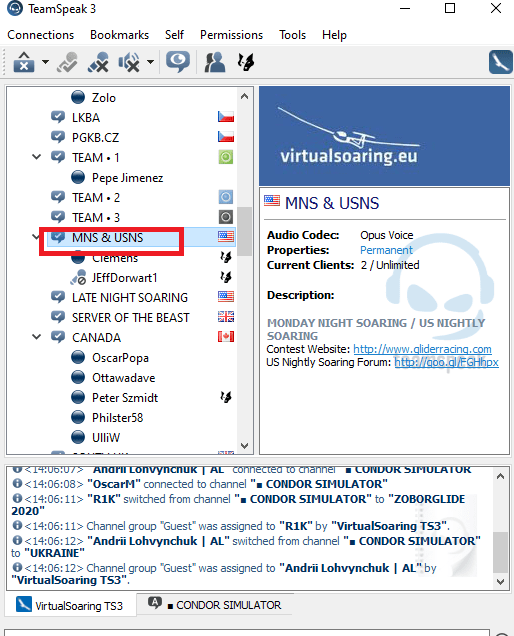 Teamspeak: channel: ts3.virtualsoaring.eu:9982 | password: ask13 | Channel- MNS/USNS. (Note, please go to Settings and set up โPush-to-talkโ for your mic.)