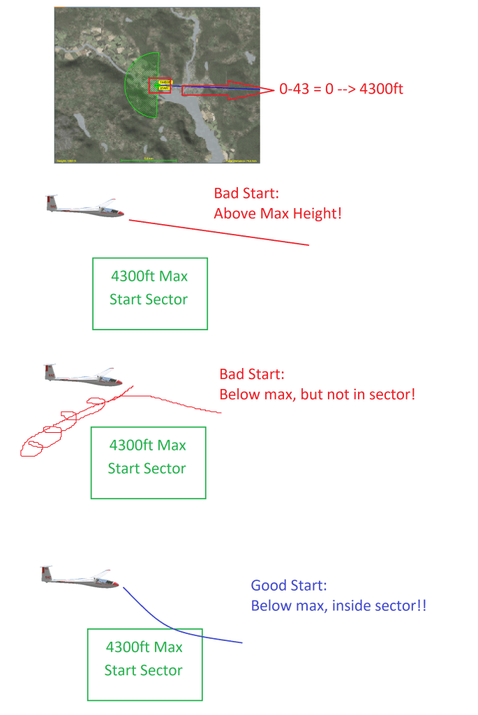 The green box represents the start sector like in the Flight Plan above. To get a valid start, you must be below 4300ft MSL, within the boundaries of the sector.