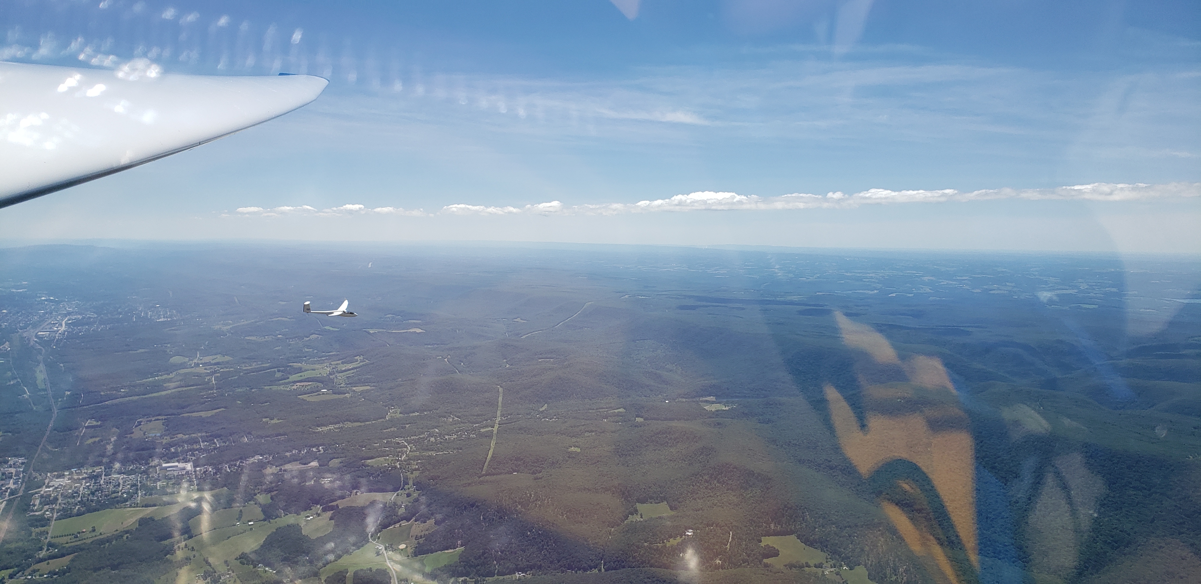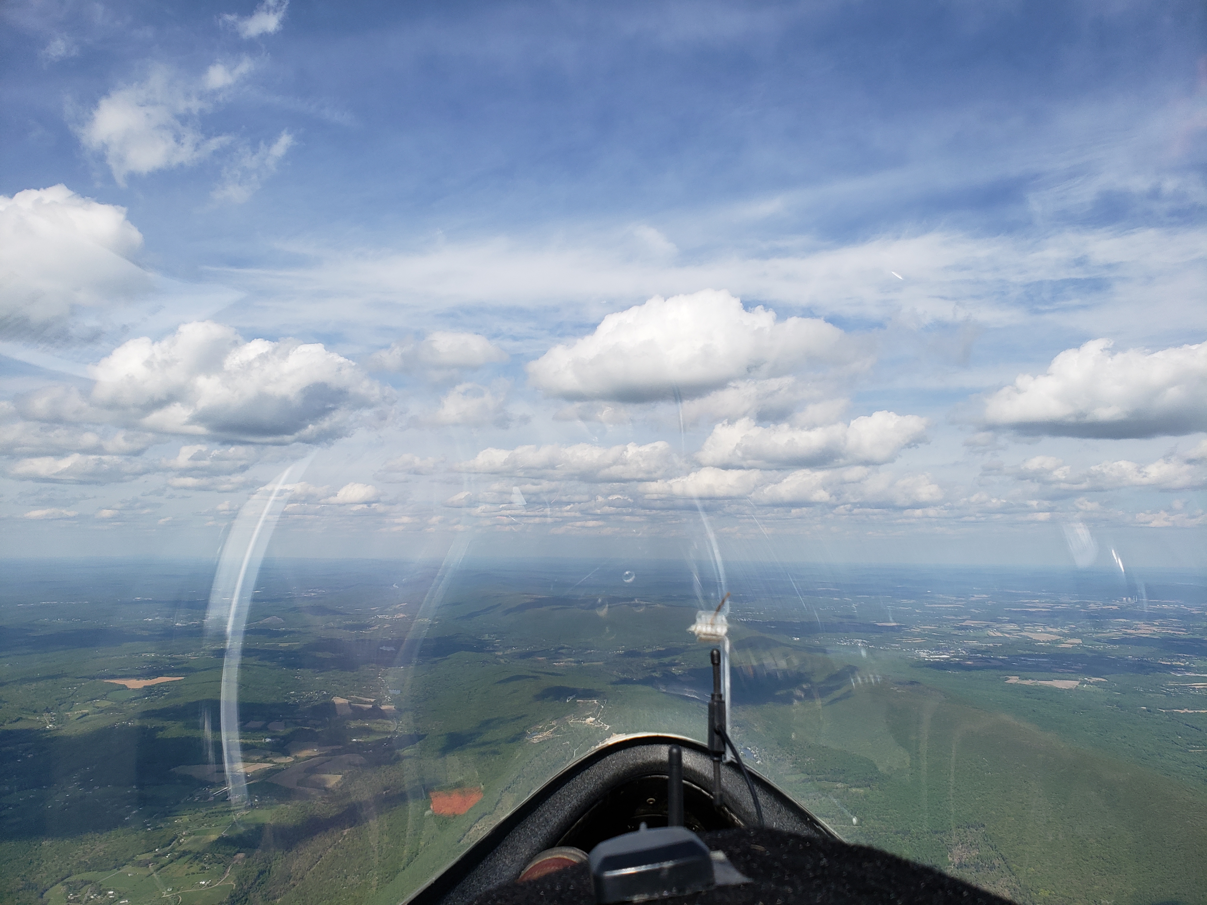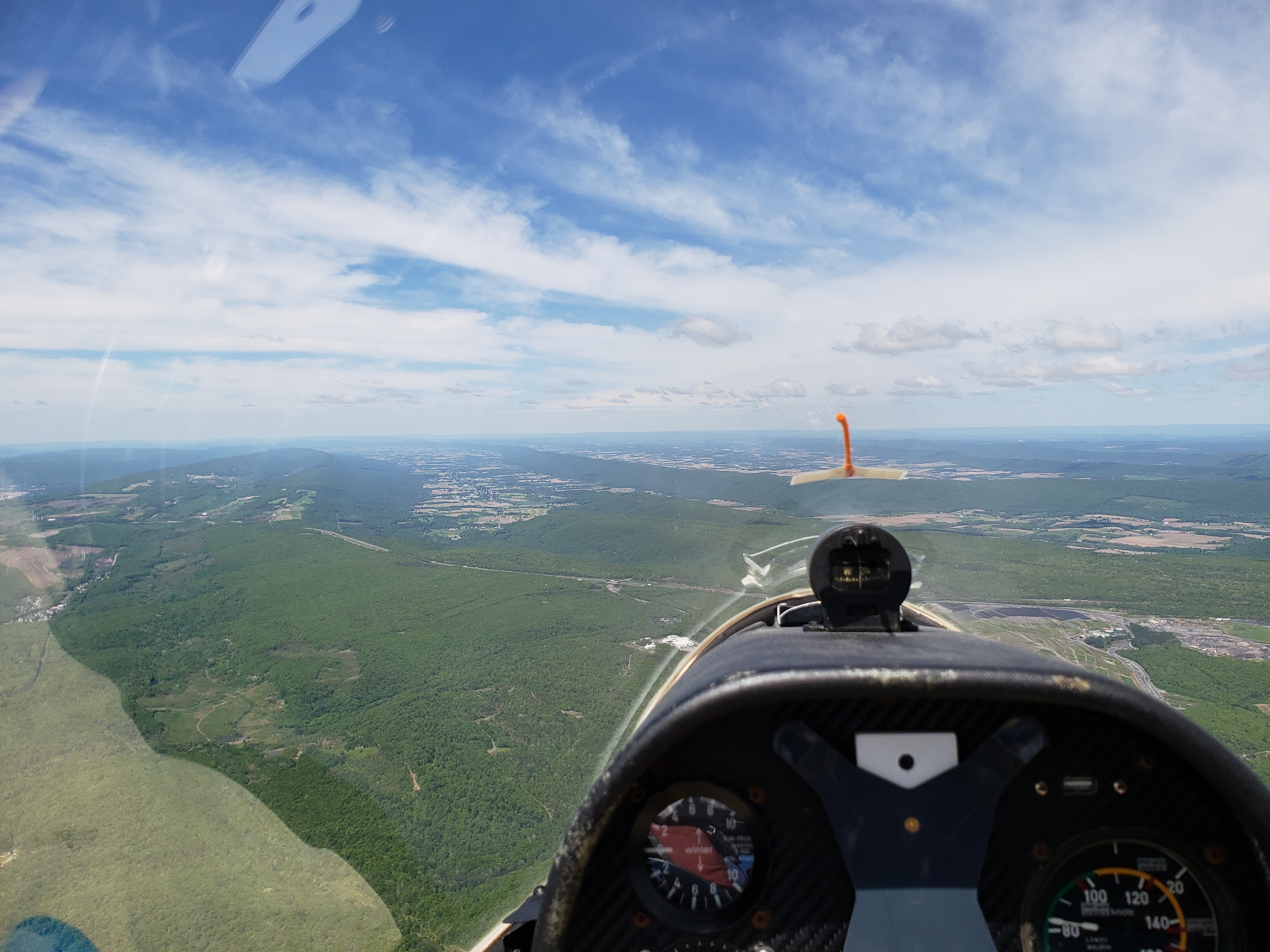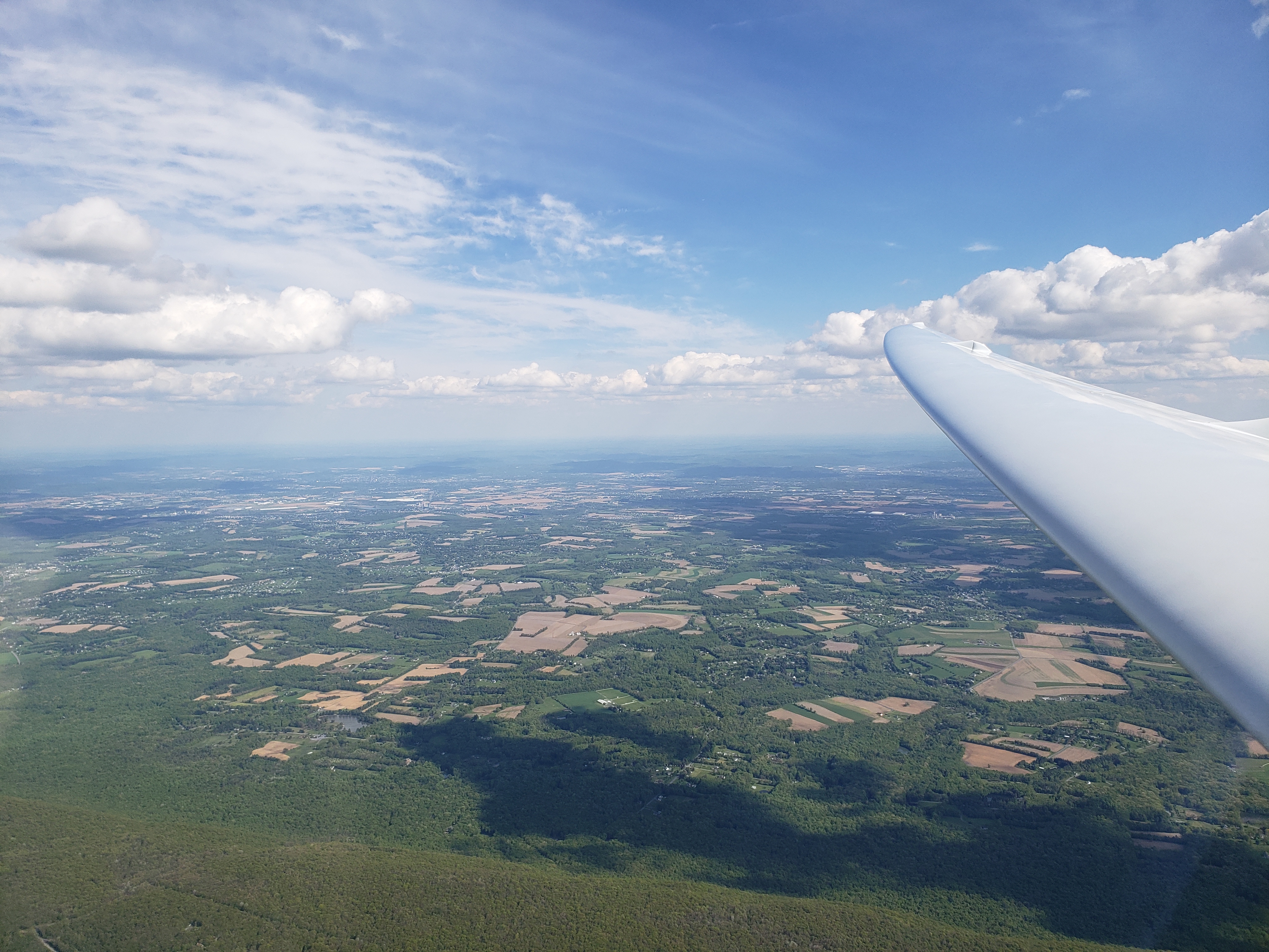 But that was almost in jest. I was cruising along at 85 knots, sun setting off my shoulder, chasing my shadow off my right wing. The lift was smooth, the whole Nittany valley lit up in the glorious evening sun. It was surreal.