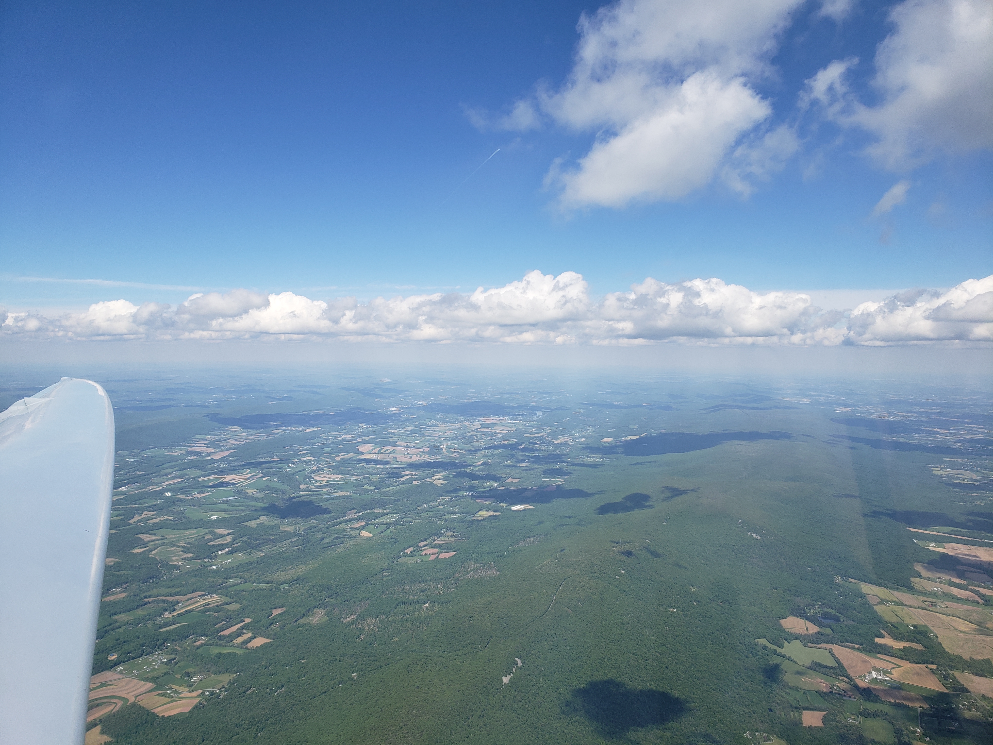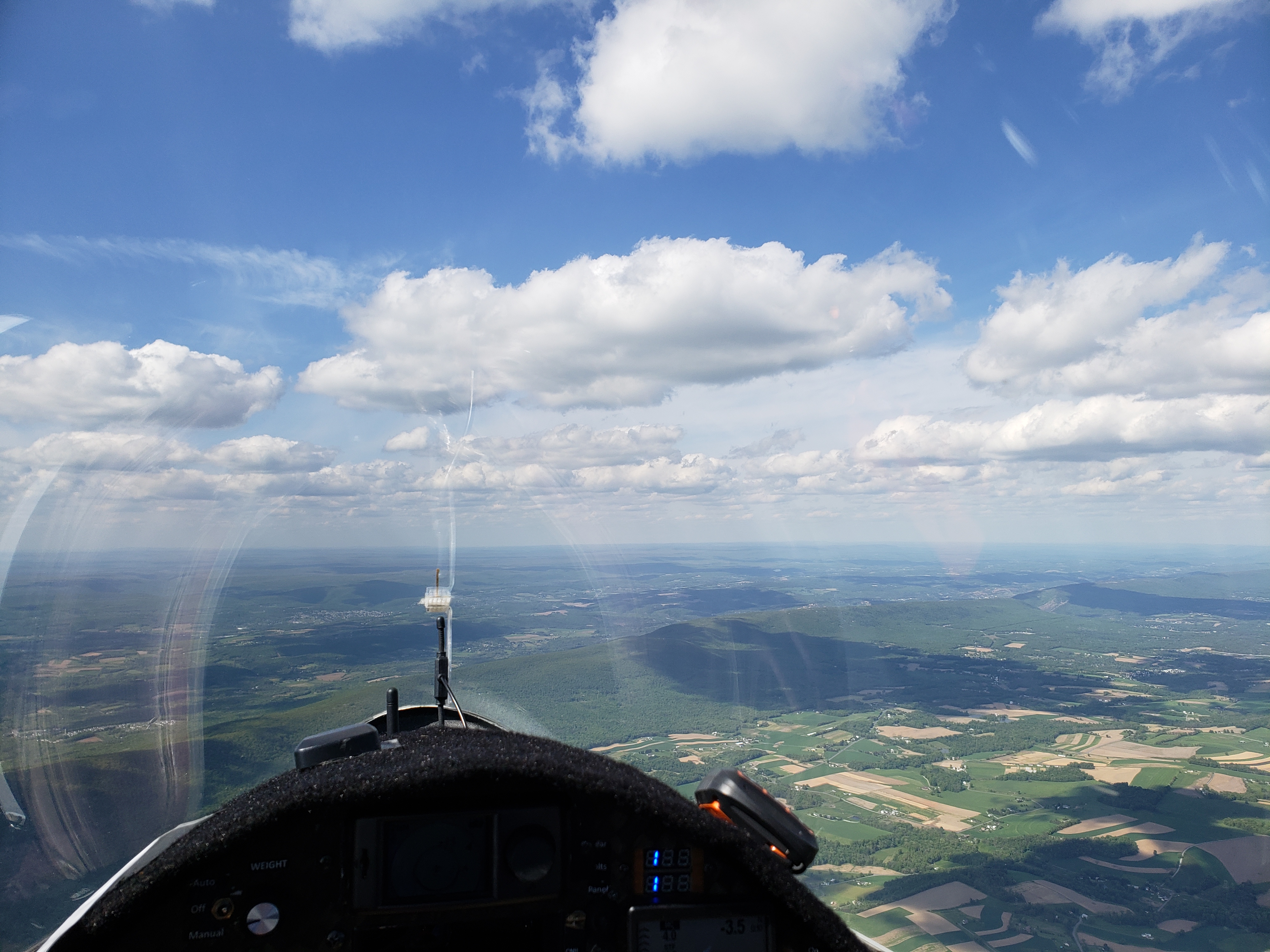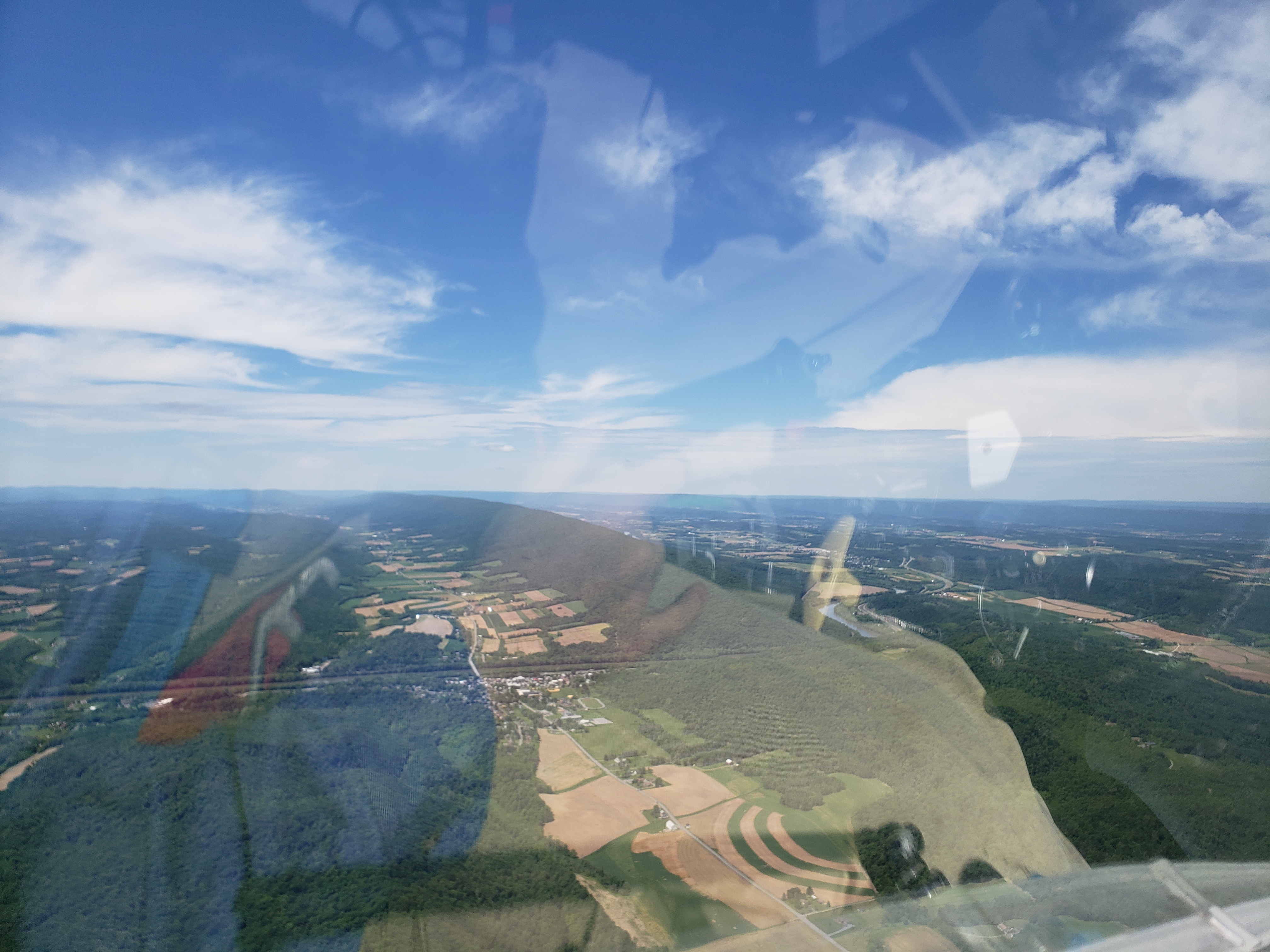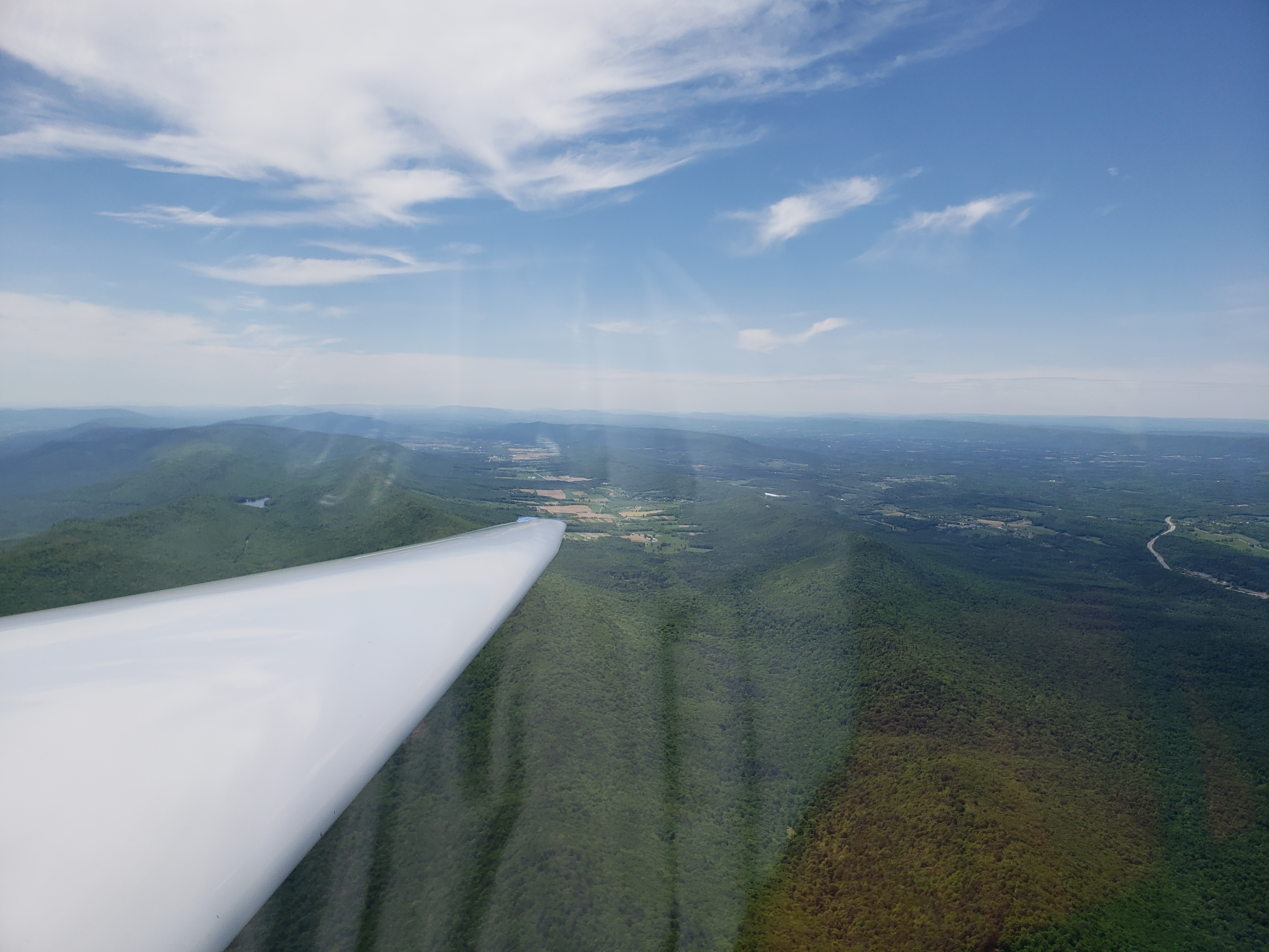 But that was almost in jest. I was cruising along at 85 knots, sun setting off my shoulder, chasing my shadow off my right wing. The lift was smooth, the whole Nittany valley lit up in the glorious evening sun. It was surreal.