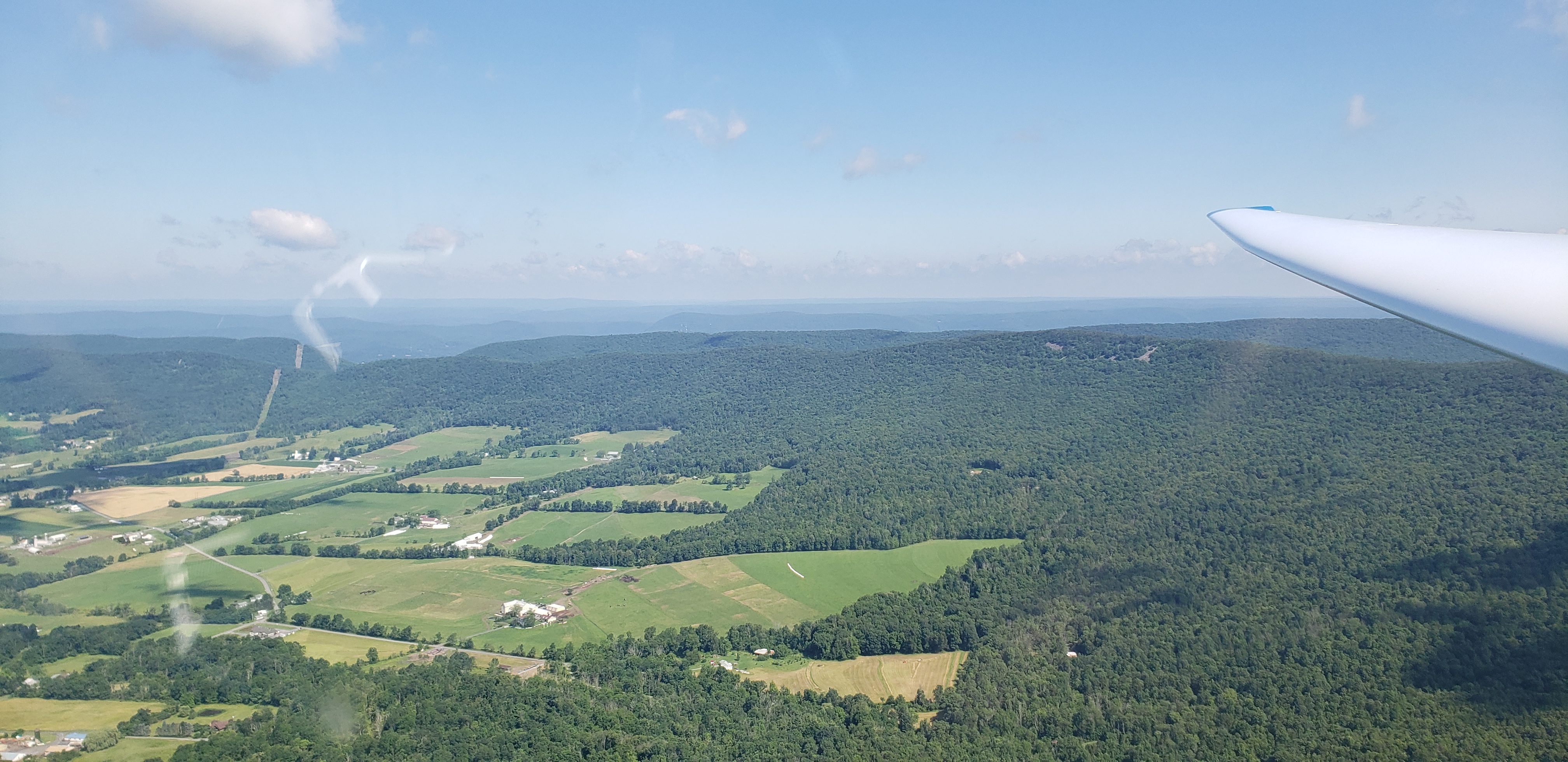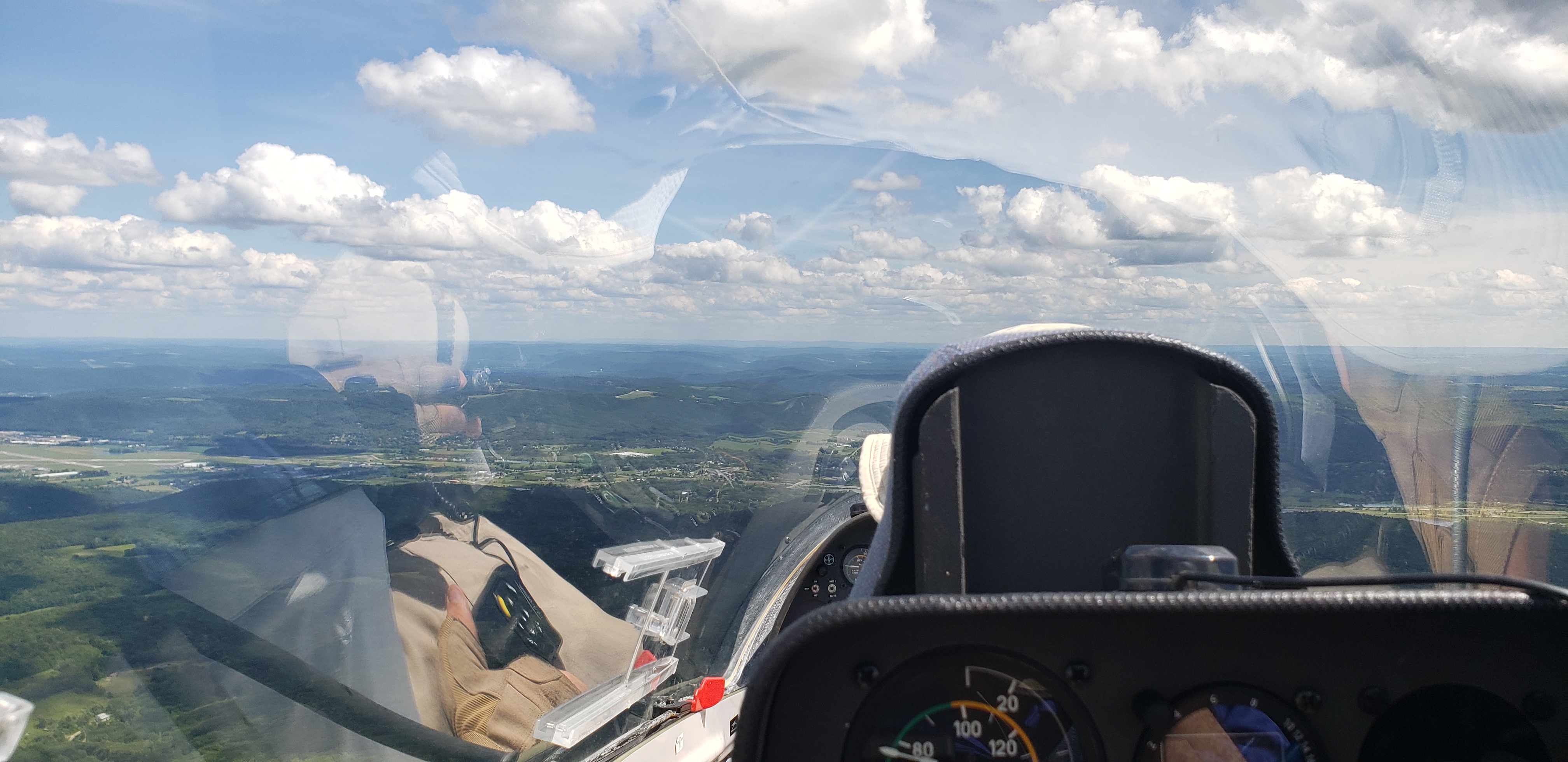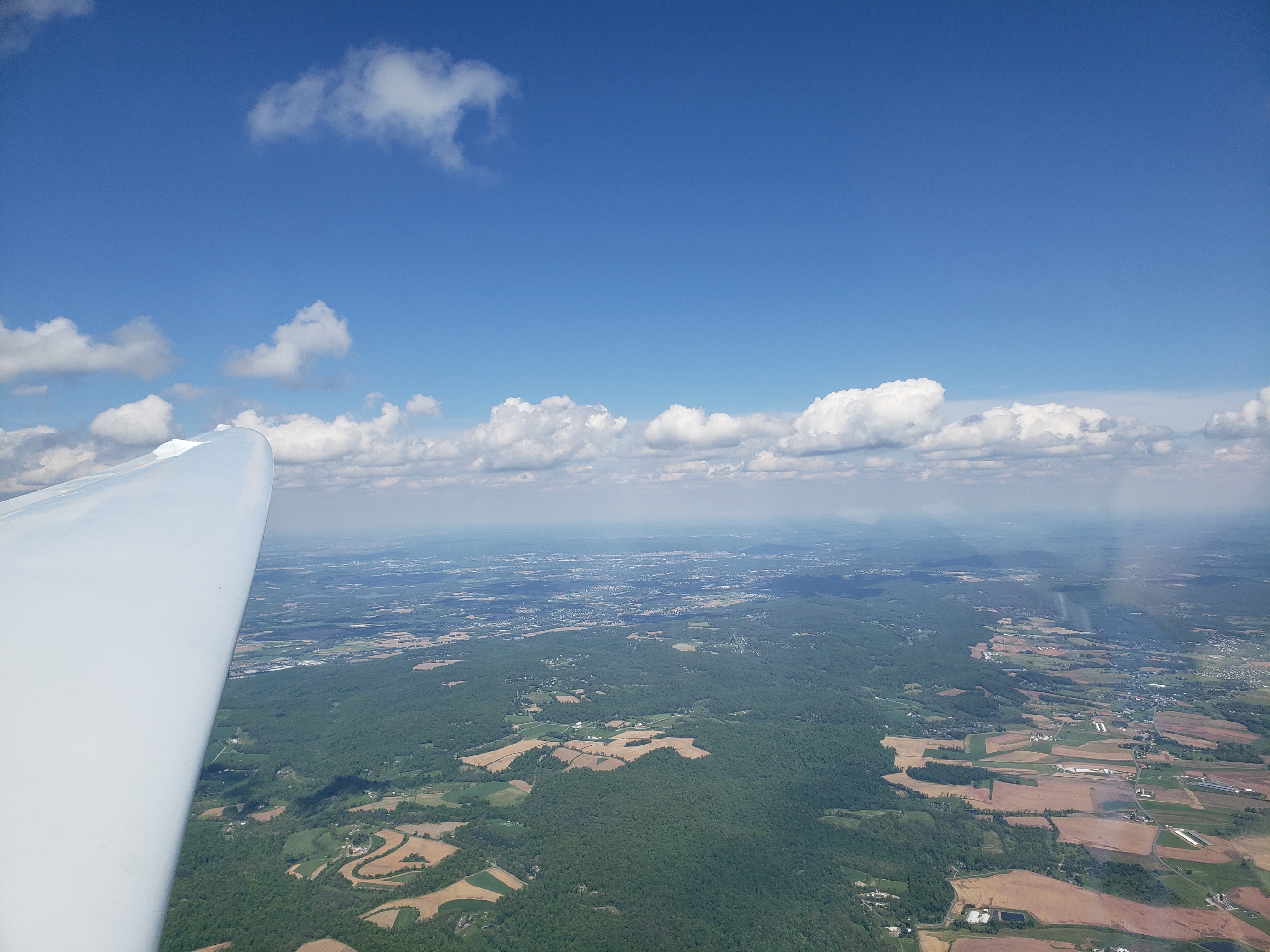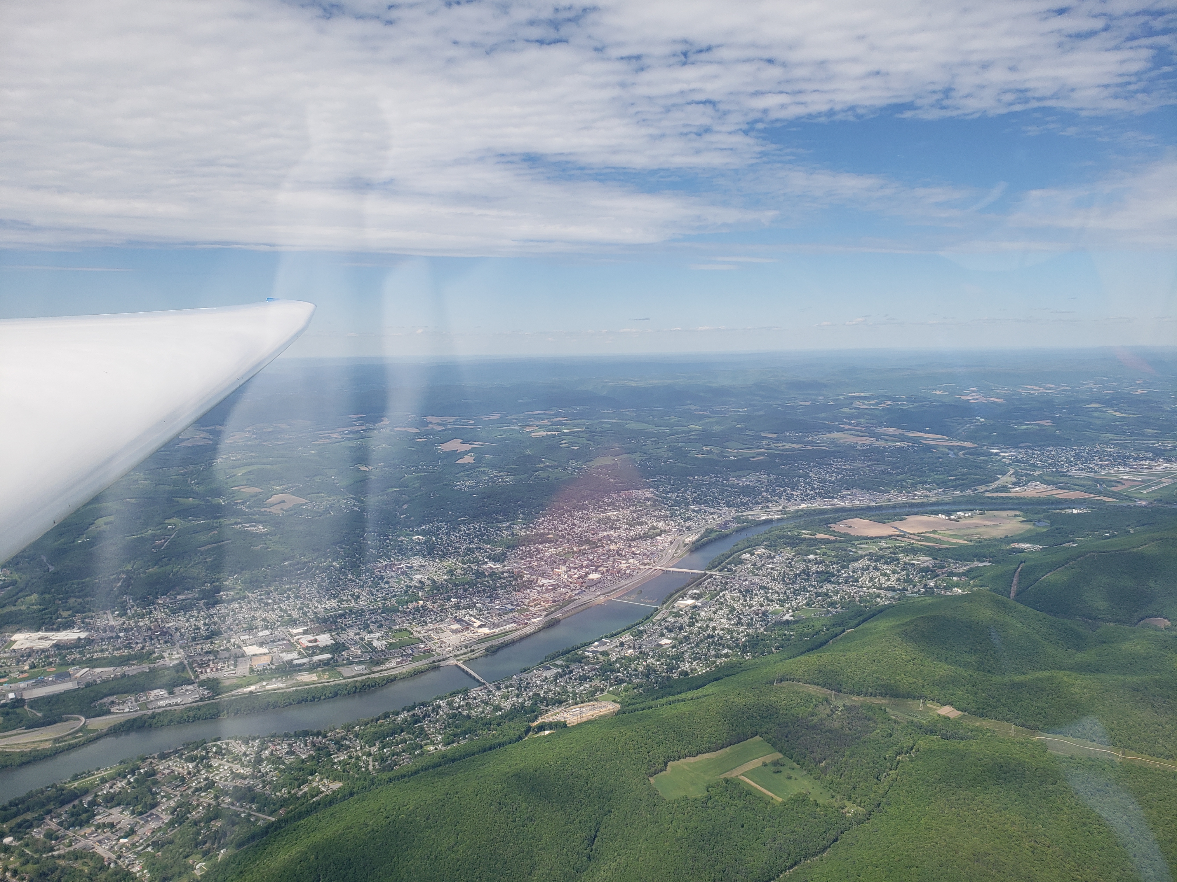 But that was almost in jest. I was cruising along at 85 knots, sun setting off my shoulder, chasing my shadow off my right wing. The lift was smooth, the whole Nittany valley lit up in the glorious evening sun. It was surreal.