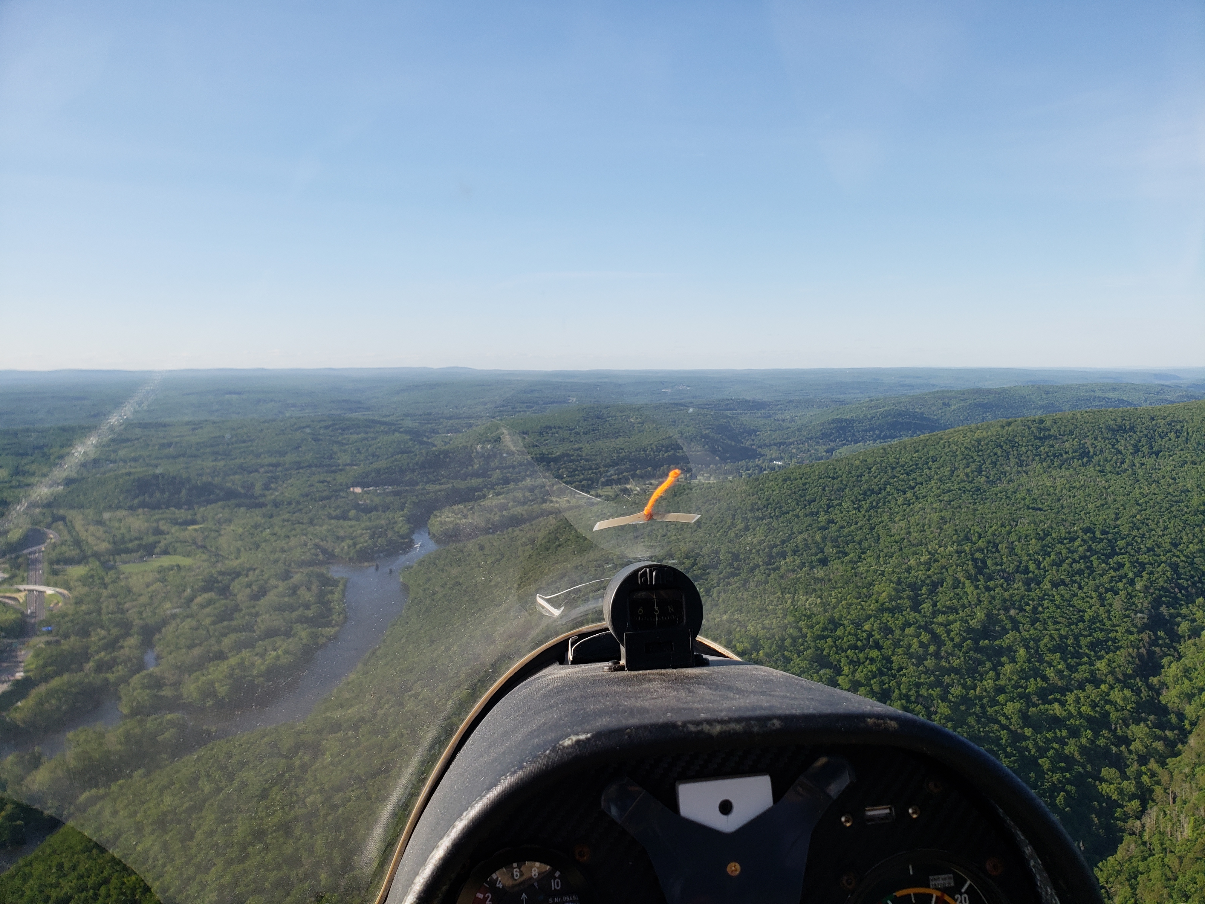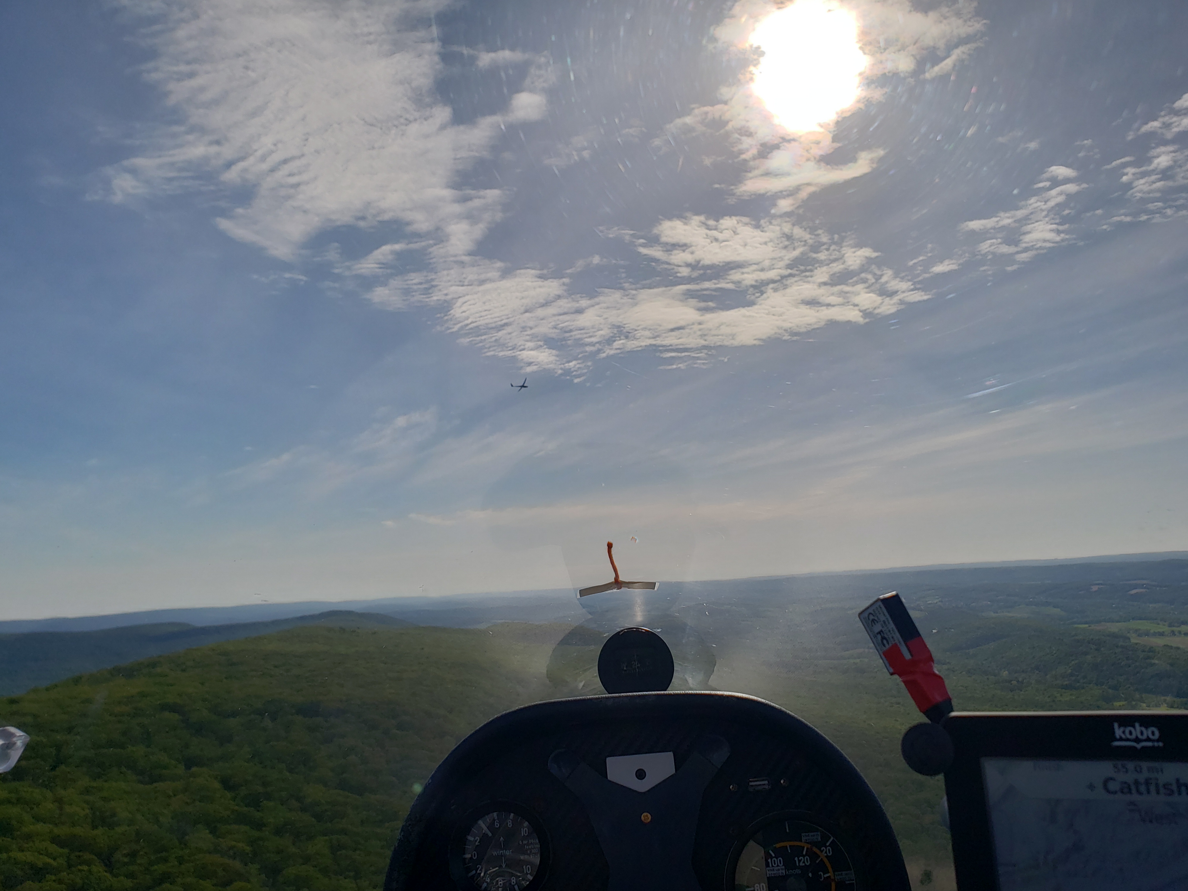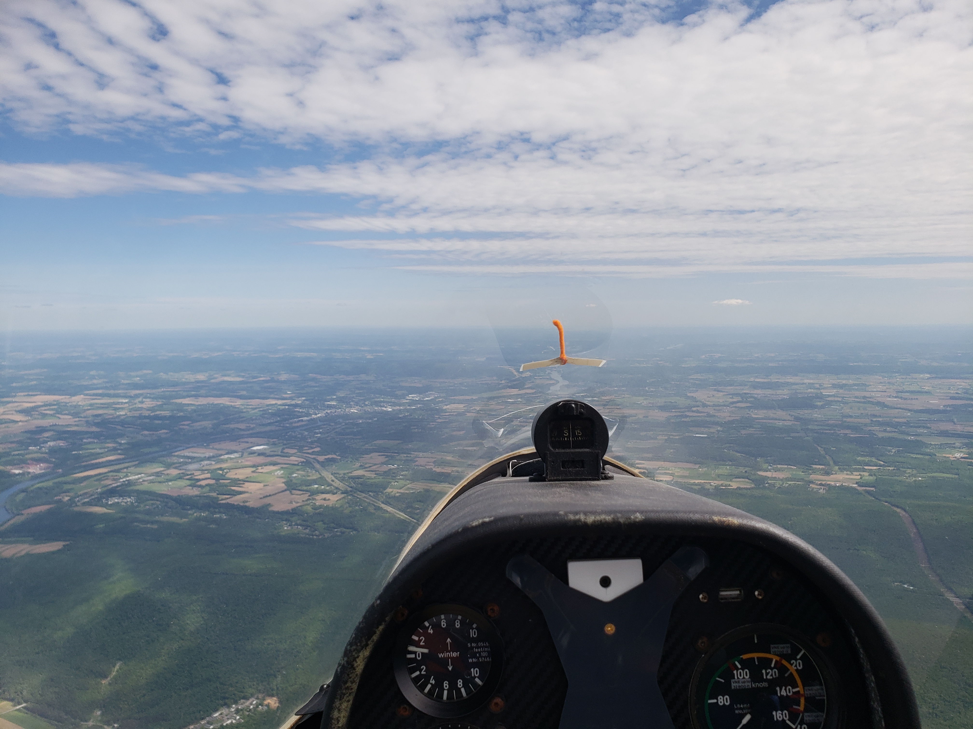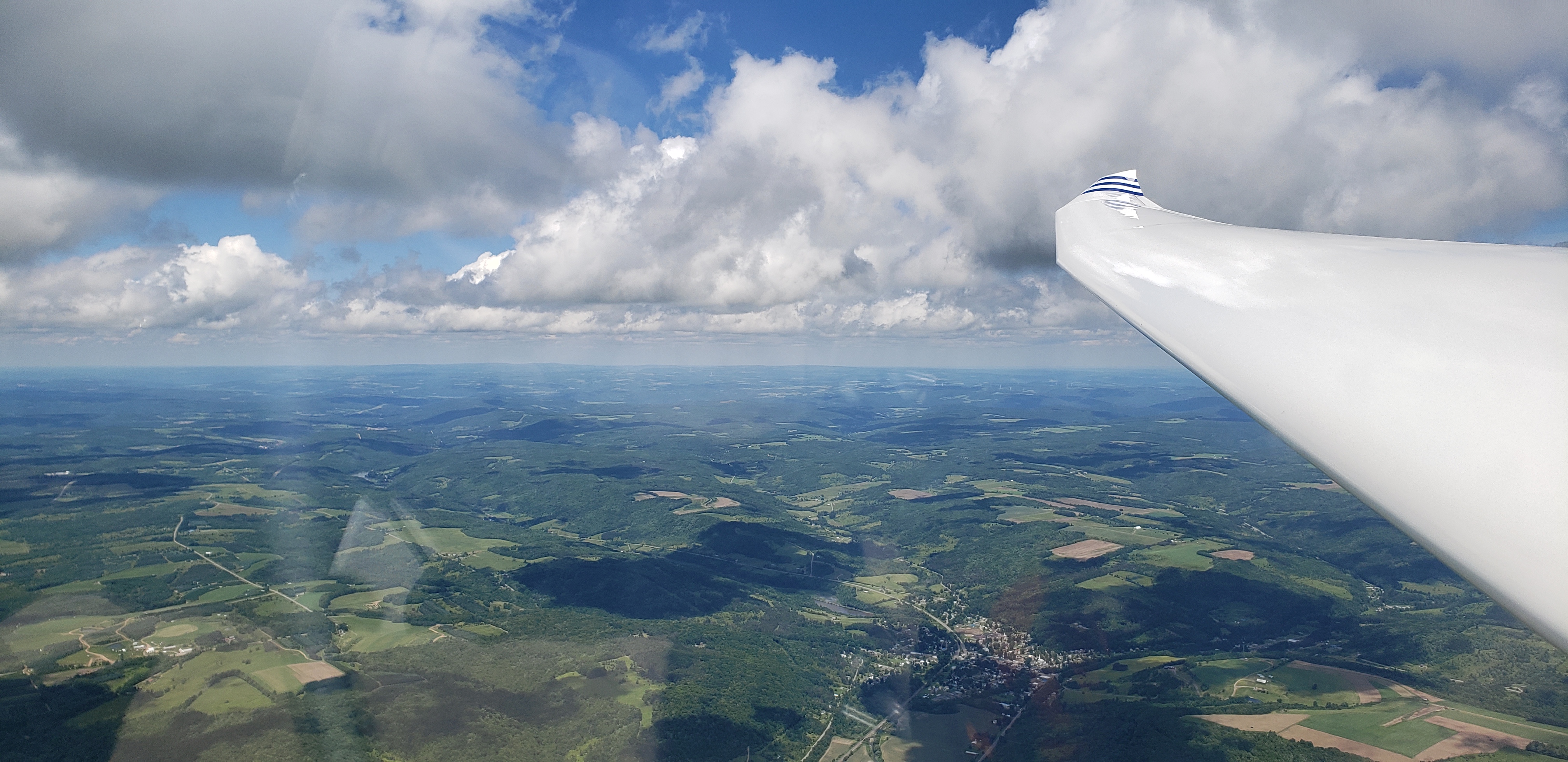 But that was almost in jest. I was cruising along at 85 knots, sun setting off my shoulder, chasing my shadow off my right wing. The lift was smooth, the whole Nittany valley lit up in the glorious evening sun. It was surreal.