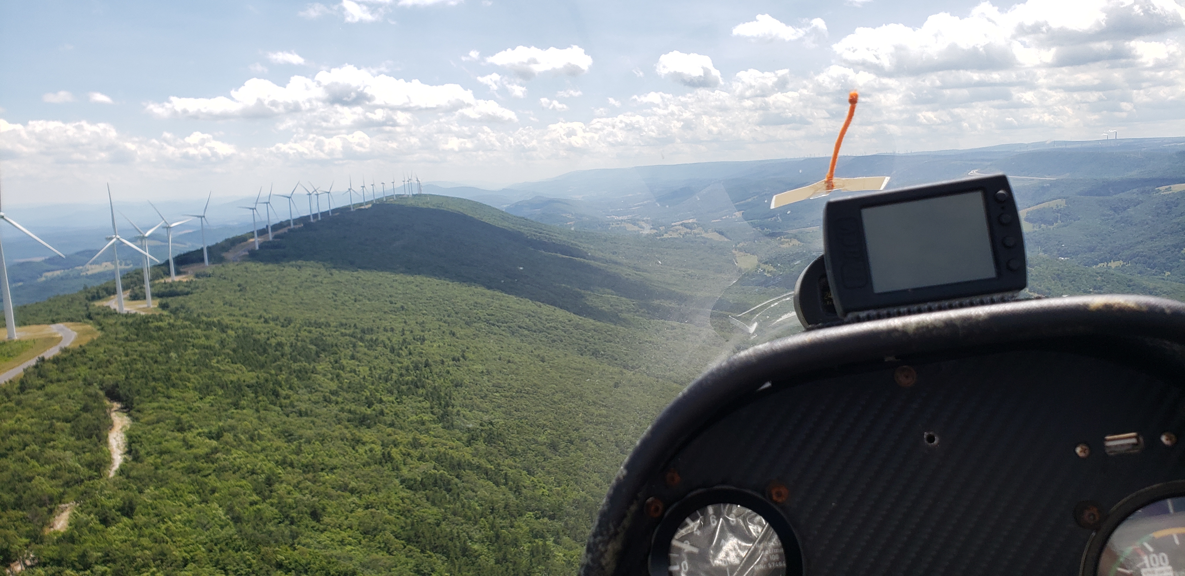 Now firmly established on the high West Virginia ridges, I was really hoping to let ‘er rip. But the lift was not working that well. Below ridge top it just barely kept me up and level with the ridge and then the sections would work for about 95-100 knots. I expected that with the higher elevation I would find a redline ridge, but to no avail. Every minute counted and I kept the ‘4 going as fast as it would go.