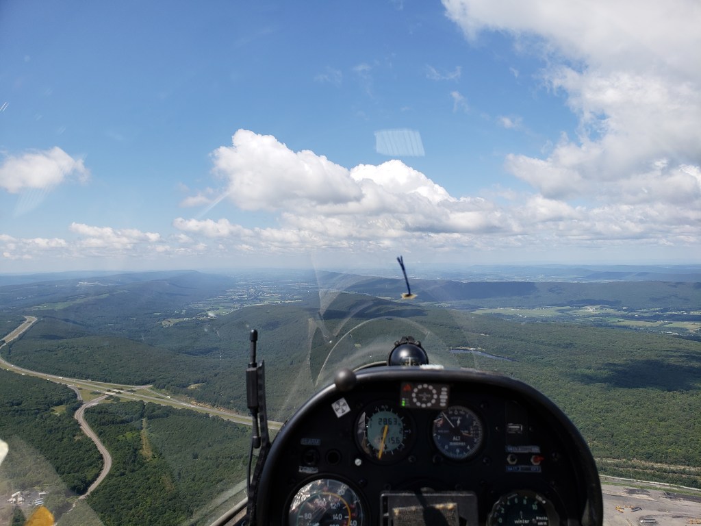 On the Mahantango, I checked the time and realized I was going quite slow. To make some time, I dropped down on the ridge, which worked quite well in the higher parts. But just as I started getting relaxed, I got to Pillow and the ridge got soft. Just beyond the gap, I watched my airspeed bleed off at an alarming rate and said to myself, “You gotta take the next thermal!” When I saw my airspeed drop five knots in an instant, I knew the thermal was several hundred yards ahead. And it was! A weak two knotter, but thank you very much.
