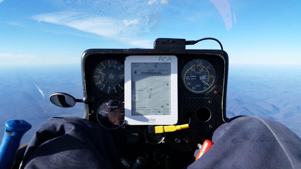 Then I got stuck at 17,500. It was slow torture. I figured that this is the gliderpilot’s equivalent of purgatory. My feet were starting to get cold, the electric sock batteries having died over an hour ago. You’re almost there, just hang in there.